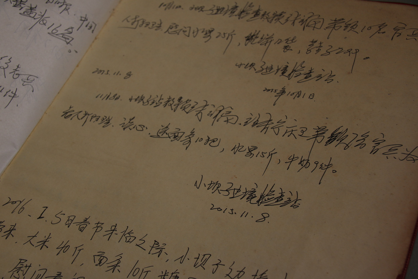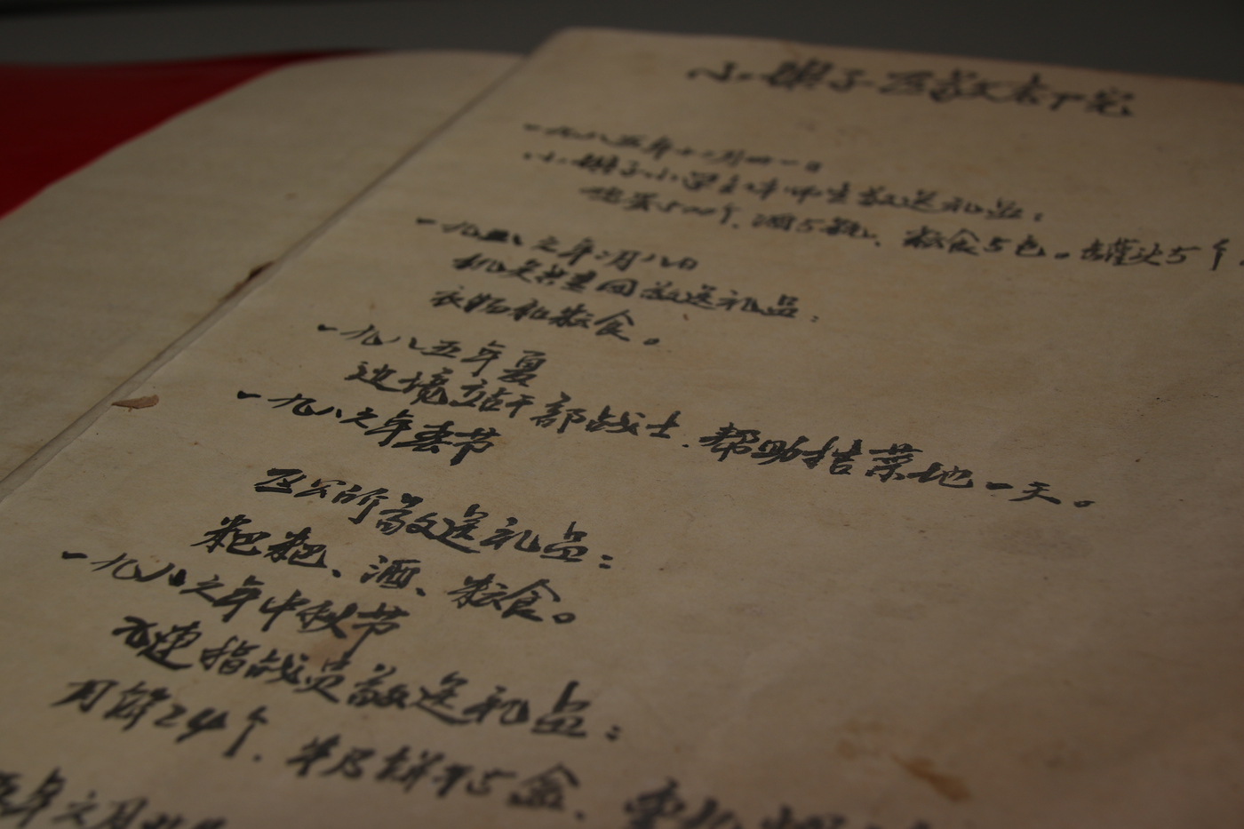 最初的字迹,是蘸着墨汁的毛笔书写的,笔锋沉稳,写的是挑水劈柴、缝补浆洗的日常。后来换成了钢笔,字迹娟秀或刚劲,记录着陪老人唠家常、过节包饺子的温馨。如今,中性笔的字迹跃然纸上,依旧写满了理发修甲、送医送药的点滴。