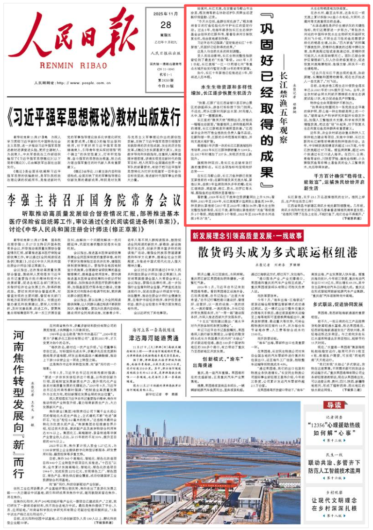 看数量,2024年长江干流单位资源量同比上升9.5%;看物种,2021年至2024年,长江流域累计监测到土著鱼类344种,种类数比禁渔前(2017年至2020年)增加36种;看水生生物完整性指数等级,长江干流、鄱阳湖比禁渔前的“无鱼”等级提升2个等级,洞庭湖提升3个等级,2022年至2024年赤水河连续3年为“良”。