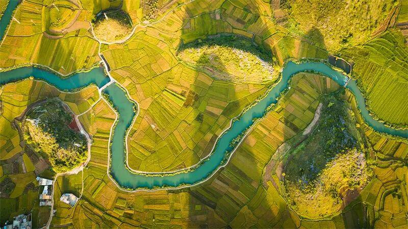 文山的人间烟火,则藏在广南的八宝稻田里,藏在马关龙树脚村的彩色房子里……特别是龙树脚村,这个曾经“靠天吃饭”的村落,如今已变身为山水相依的景区。前望碧水,背靠青山,七彩民居点缀其间,这里是“望得见山、看得见水、记得住乡愁”的现实写照。