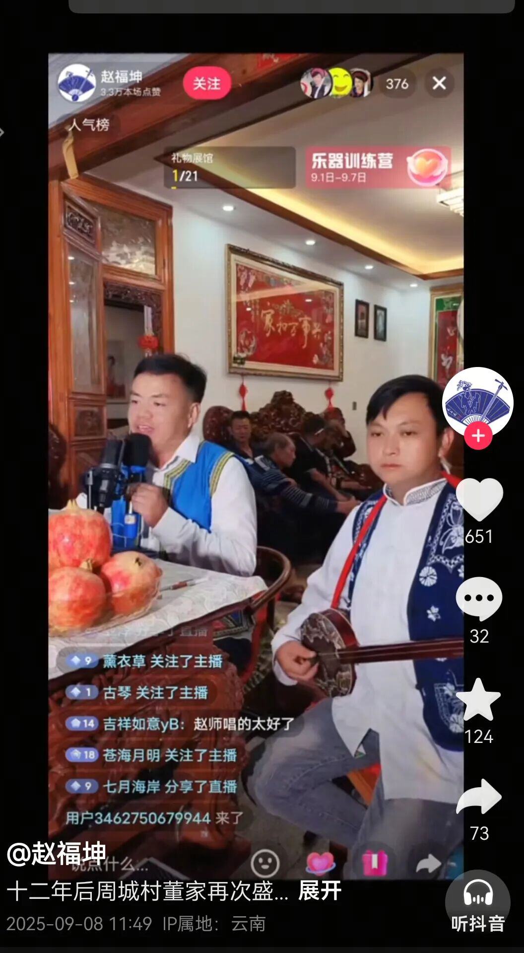当三弦声与校园的读书声、社区的欢笑声、直播间的点赞声交织,当“老曲新唱”的旋律回荡在苍洱山水间,赵丕鼎和家人用坚守证明:只要根扎得深,传统曲艺就能在新时代长出新枝,永远悠扬。