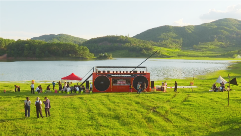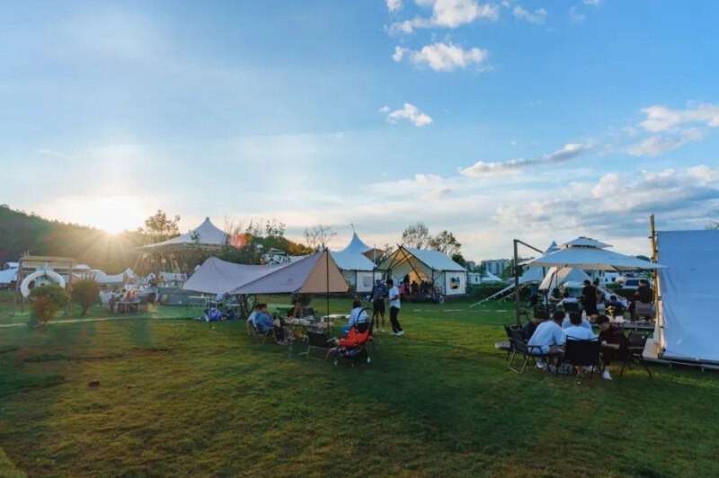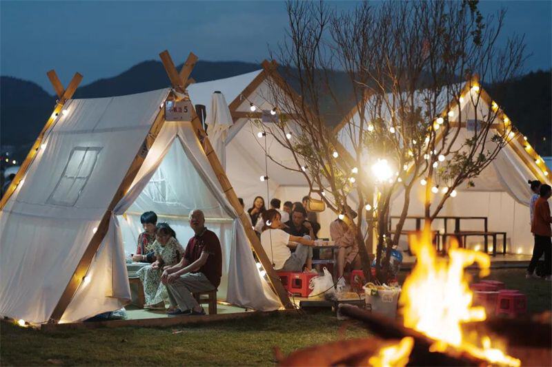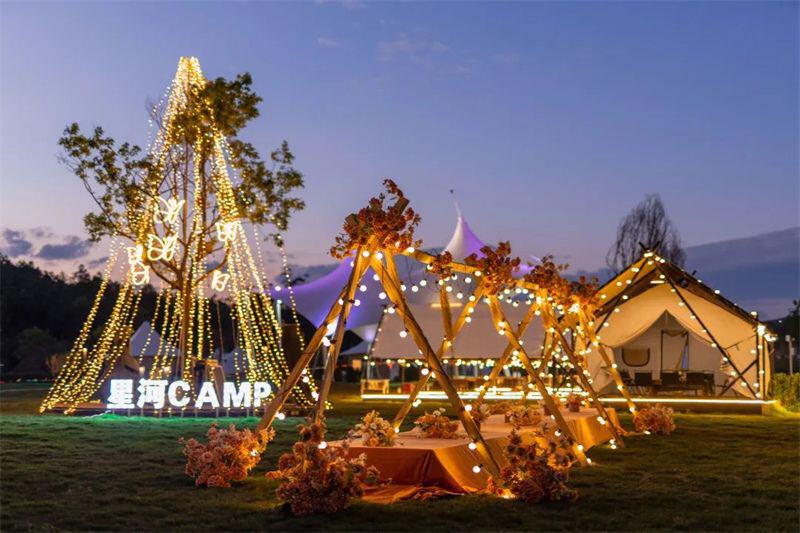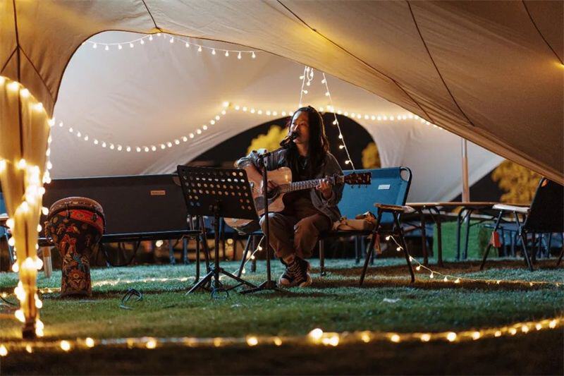 草坪上、帐篷下,温暖的营灯伴着民谣歌手悠扬的歌声,正是许多人向往的“诗和远方”。在如此美妙的环境中露营,幸福感满满。