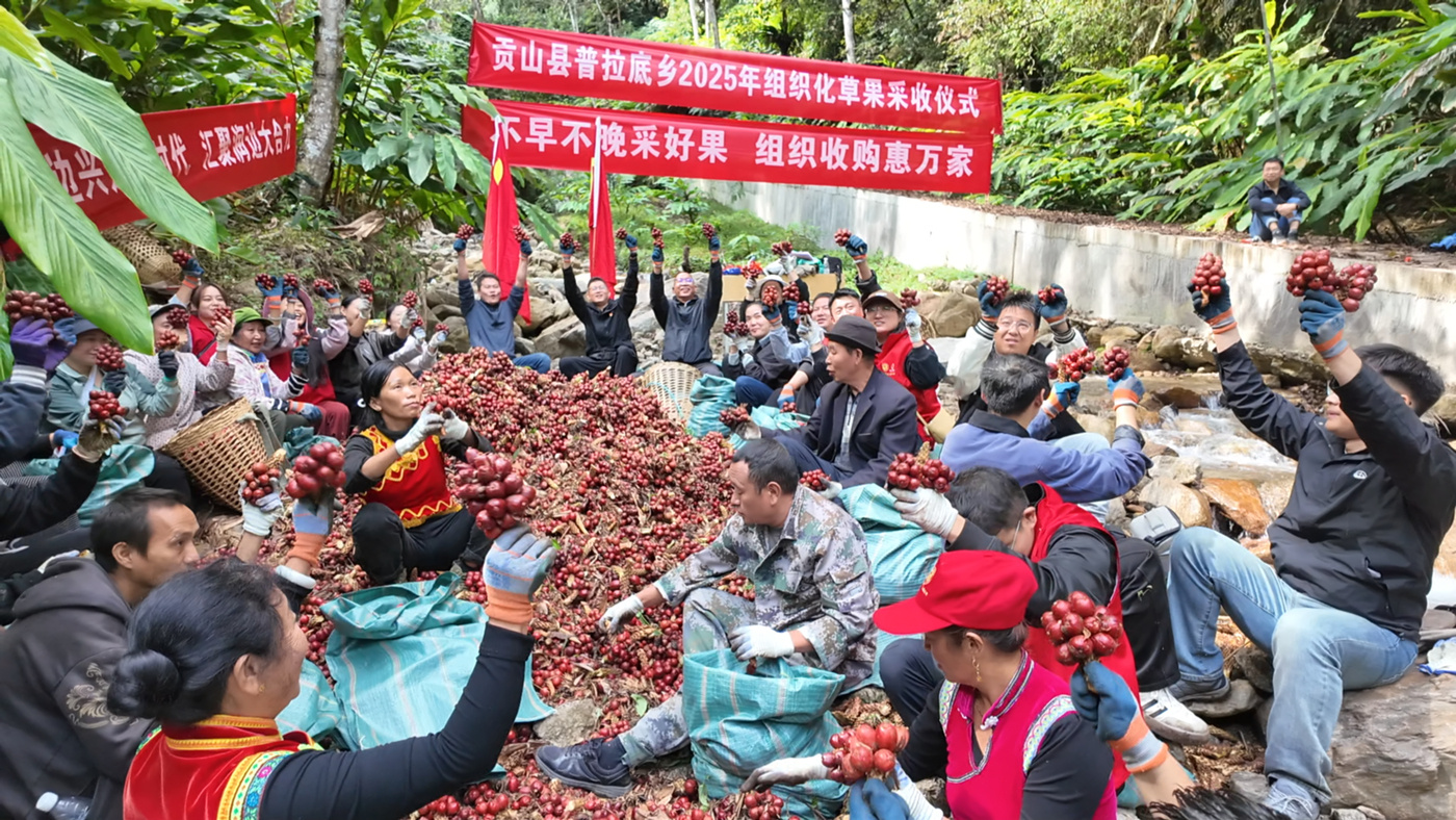 运输瓶颈也被组织化破解,乡里设9个无人机吊运点、11辆采购车,每天近11.88万斤鲜草果直达精品产业园。截至发稿,贡山县通过组织化采收草果3107.32吨,均价每公斤10.3元,带动2.5万群众稳定增收。“实现企业、村集体、农户、采购员多方共赢,稳定了群众收入,村党组织号召力也更强了。”李平波的话道出了组织化的力量。