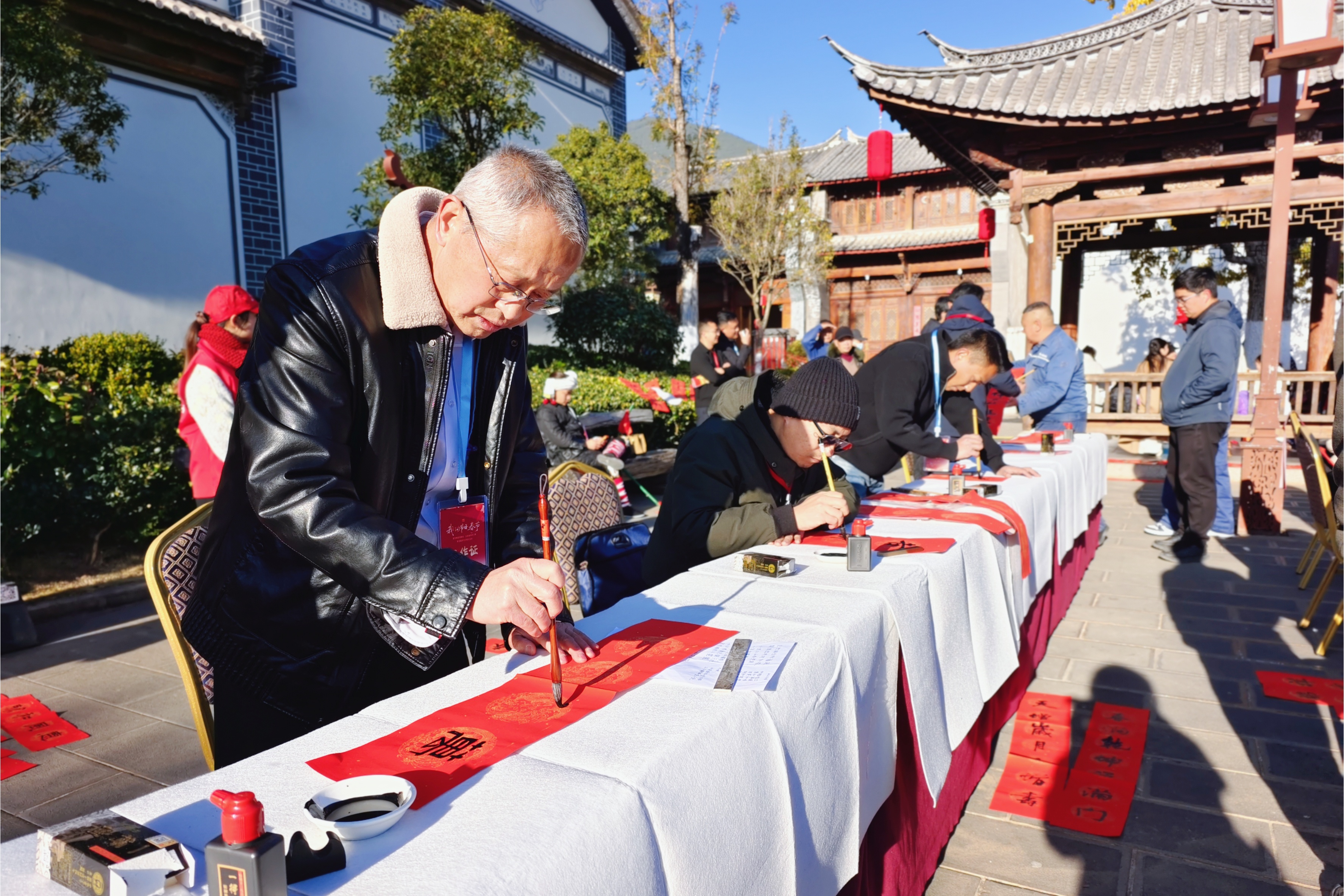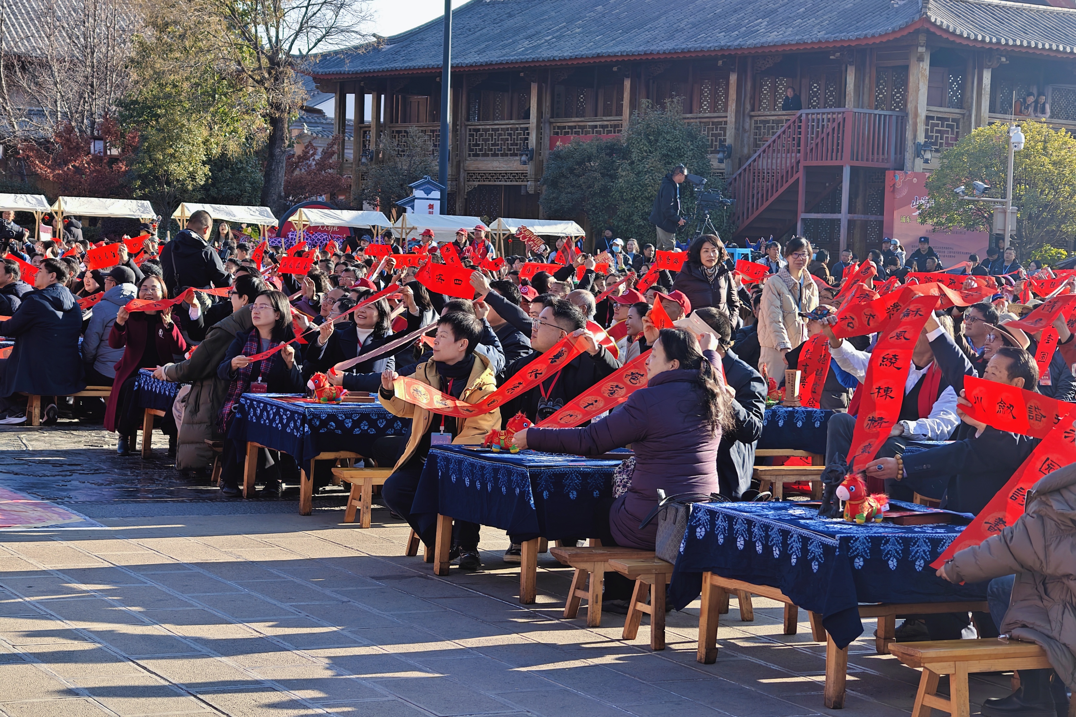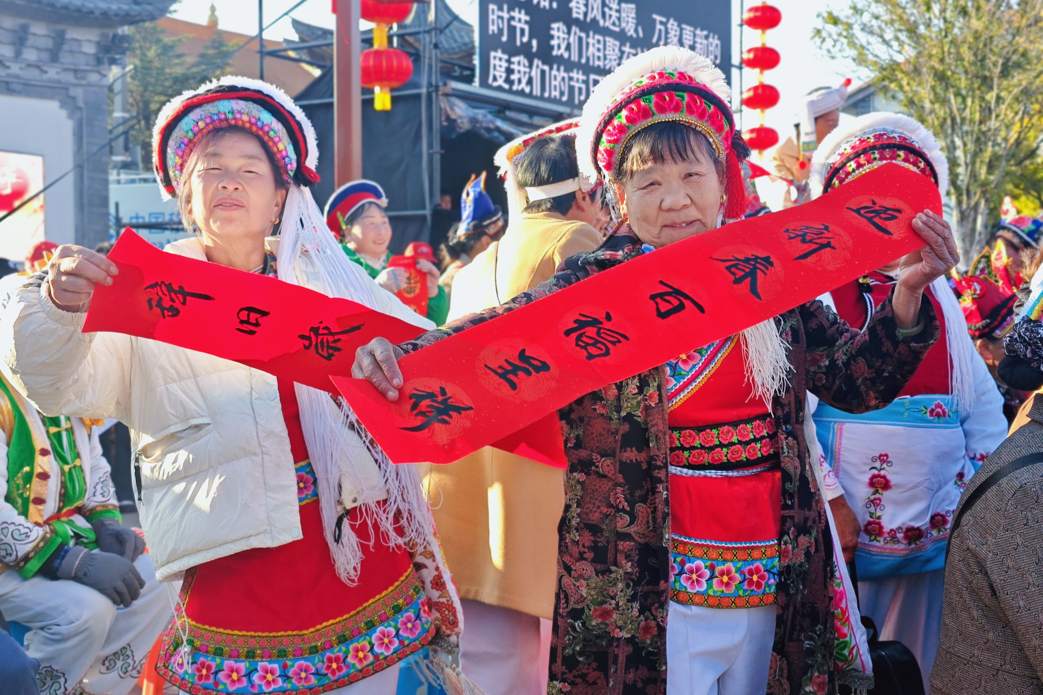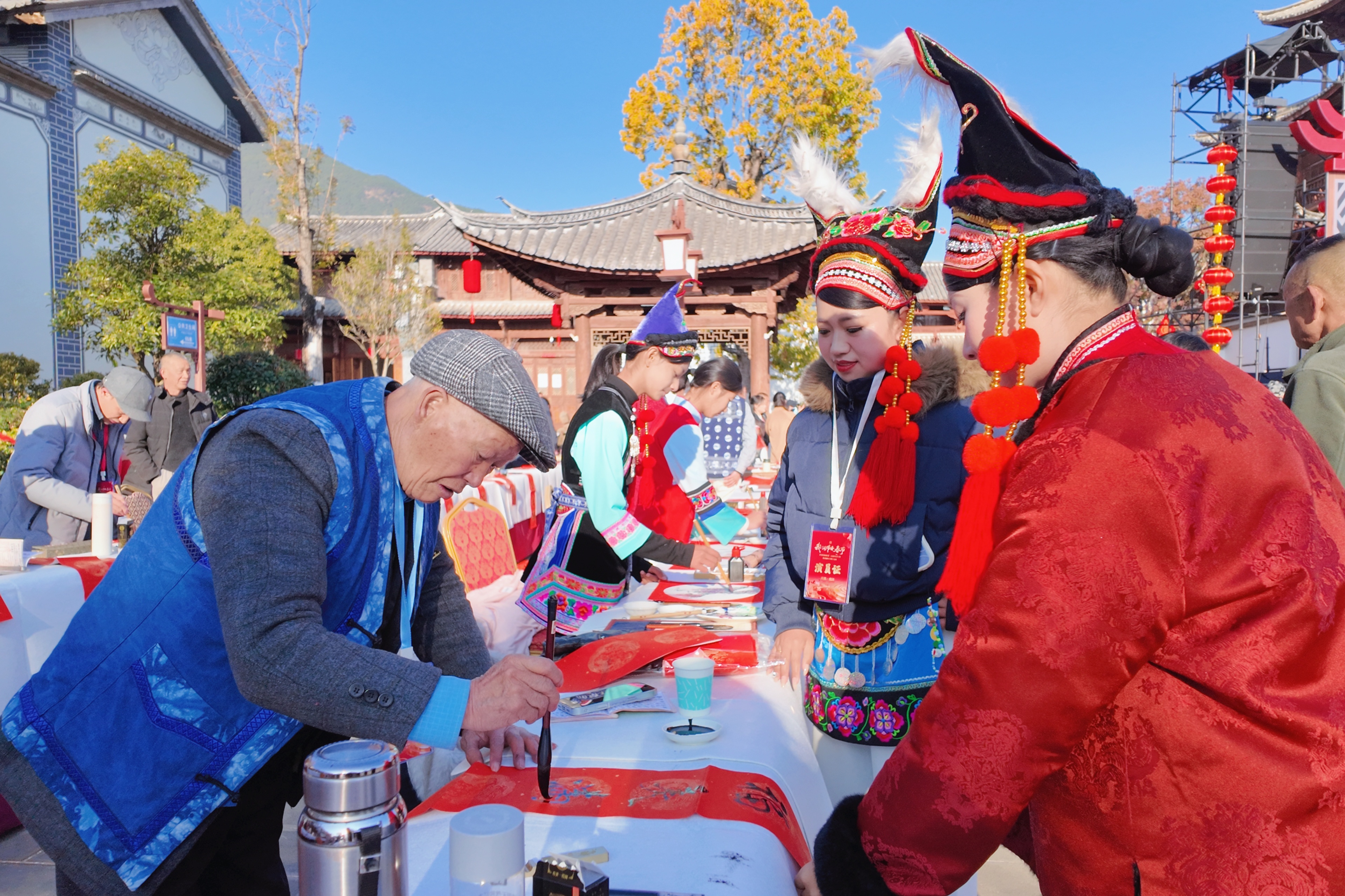 丰富的沉浸式文化体验成活动一大亮点。活动现场,“写春联、画门画、送祝福”专区全天开放,全国书法名家现场挥毫,书写春联、派送“福”字,把墨香年味和新春祝福送到群众手中;特色非遗市集上,剑川木雕、布扎、甲马版画等本土非遗技艺集中展演,让民众近距离感受非遗匠心;楹联诗词展、春联赏析等同步举行,市民游客在品联、赏联、写联的过程中,感悟中华楹联文化的博大精深。