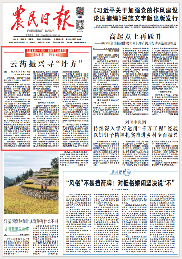 11月20日农民日报头版头条刊文