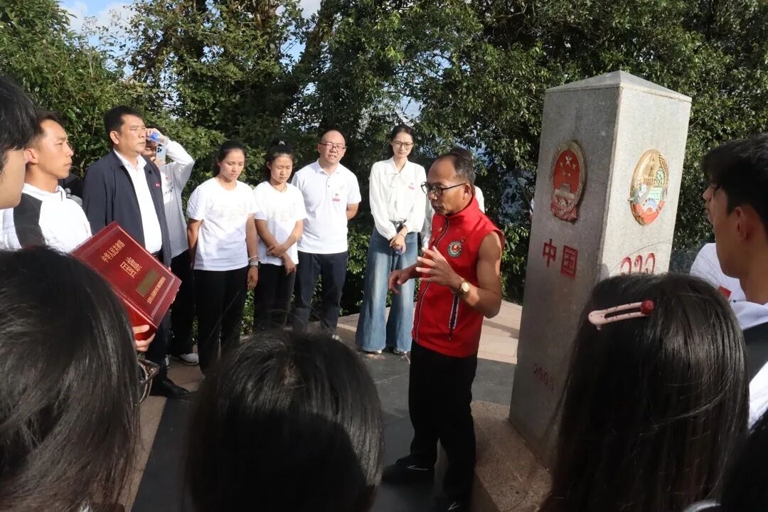 随后,全体人员高唱《义勇军进行曲》,歌声在界碑的群山间回荡,歌声与飘扬的国旗、肃穆的界碑共同构成了一幅震撼人心的画面,生动诠释了普洱学院将思政课堂从校园延伸到国境线的教育创新,让“边疆稳则国家安”的思想根基在实践感知中愈发牢固。