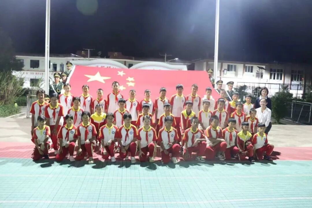 活动的第二阶段,这面意义非凡的国旗被护送至江城县曲水镇中心校,与边疆的孩子们进行了一场零距离的深情对话。