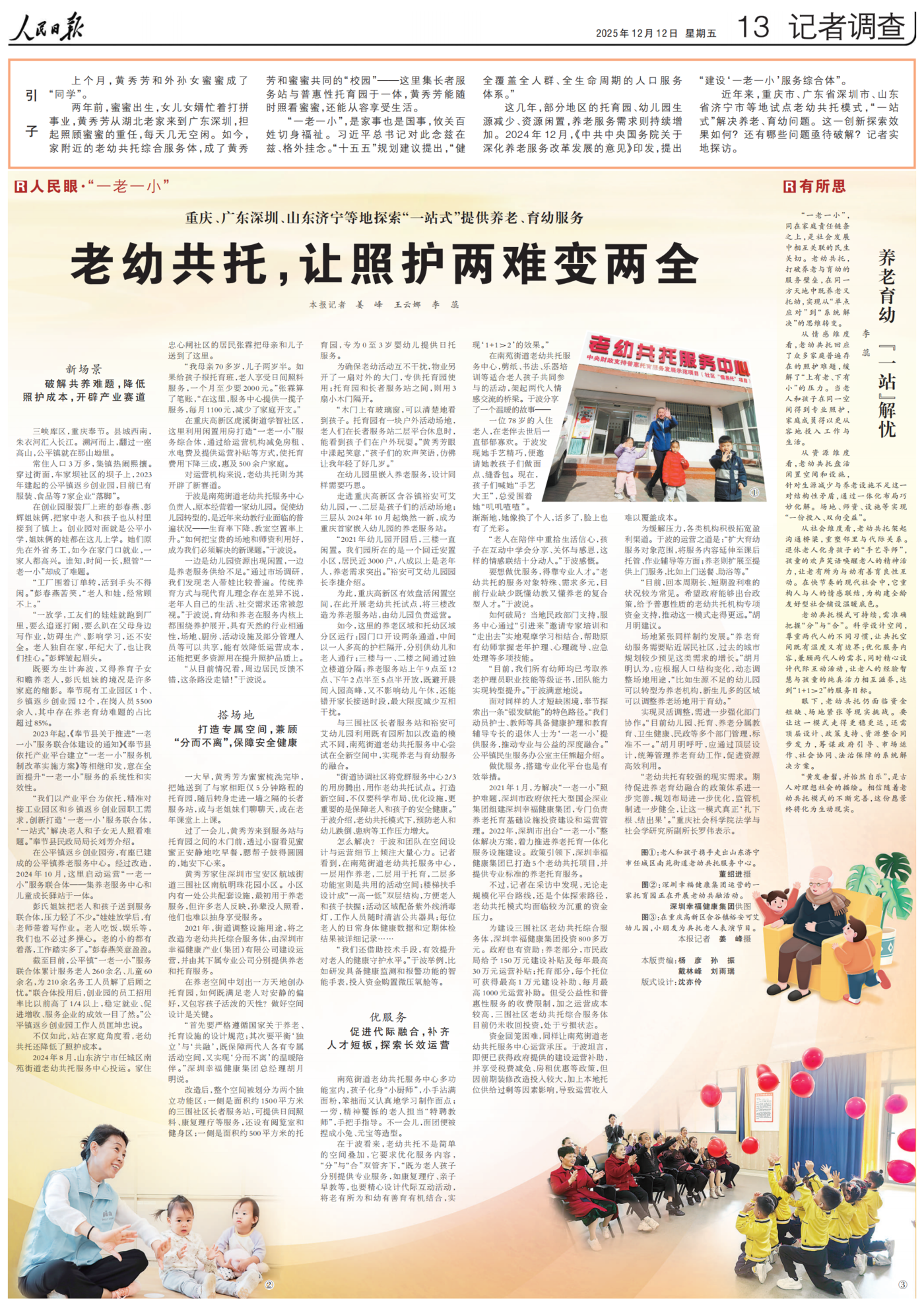 近年来,重庆市、广东省深圳市、山东省济宁市等地试点老幼共托模式,“一站式”解决养老、育幼问题。这一创新探索效果如何?还有哪些问题亟待破解?记者实地探访。