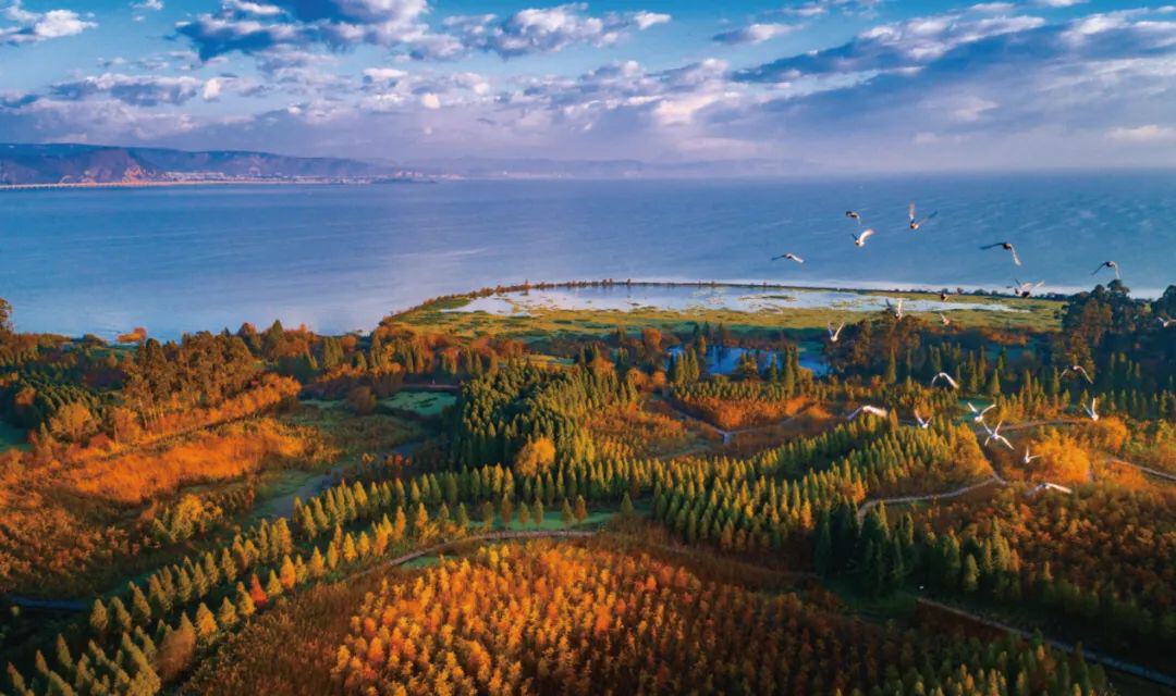 滇池畔遗珠,四面环水,良田湿地环绕,植被葱茏。传统文化与乡村振兴交织,在这里写下了和谐的景色和故事。