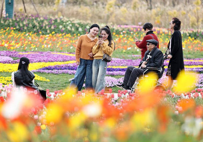 图为,捞鱼河国家湿地公园内,超过100万株郁金香竞相绽放,为春城铺开一幅五彩斑斓的春日景象。