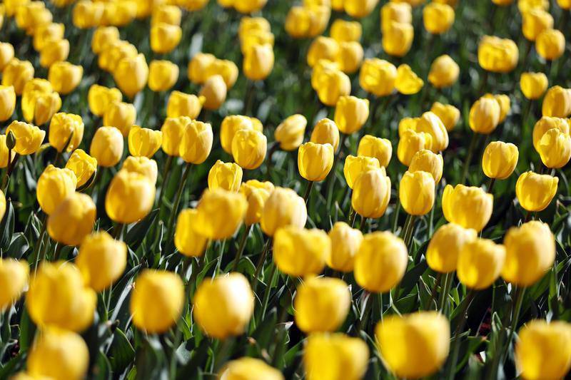 图为,翠湖公园内万株郁金香正值盛花期,各色花株争奇斗艳。