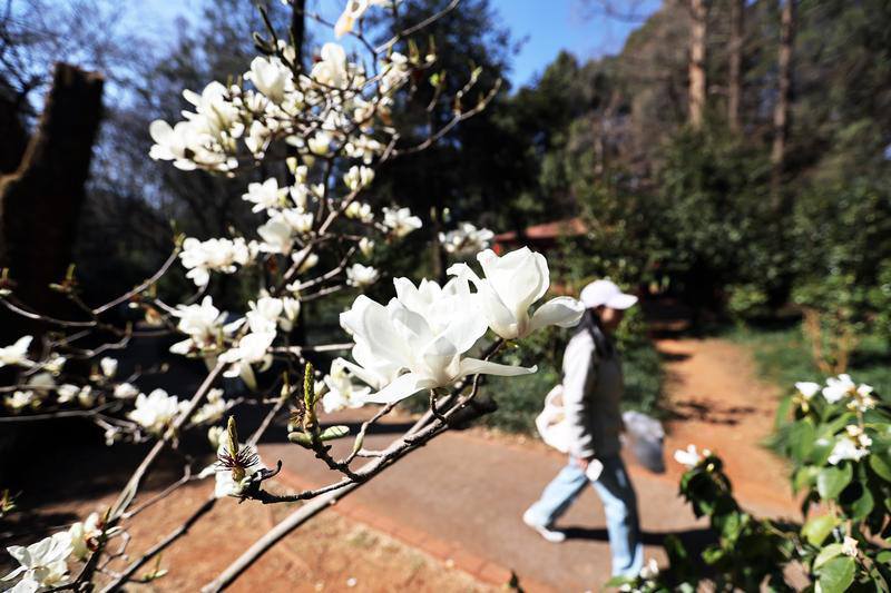 图为,昆明植物园东园内,玉兰花竞相绽放。