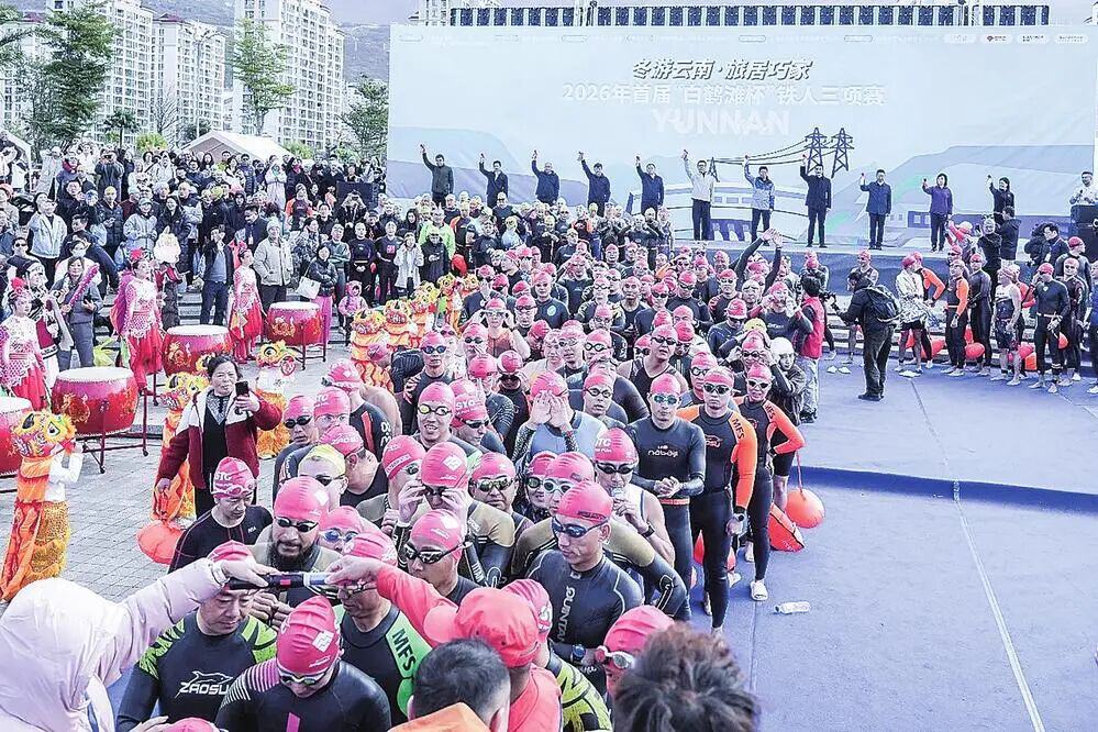 2026年元旦的晨曦,洒在波光粼粼的金沙江面上。巧家滨江公园及沿线道路,早已人头攒动,气氛热烈。为期两天的“沪滇杯”铁人三项赛在这里鸣枪开赛。