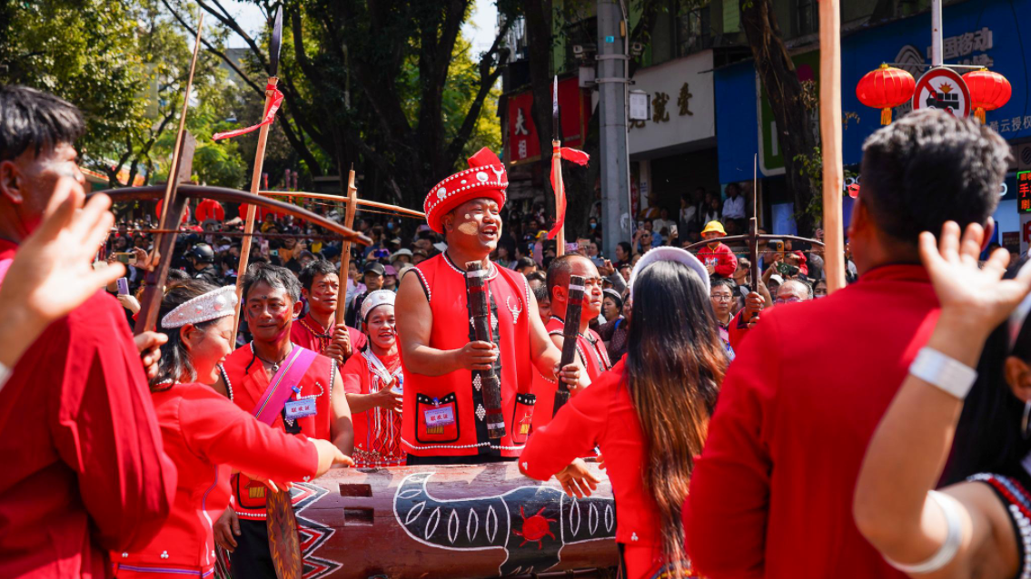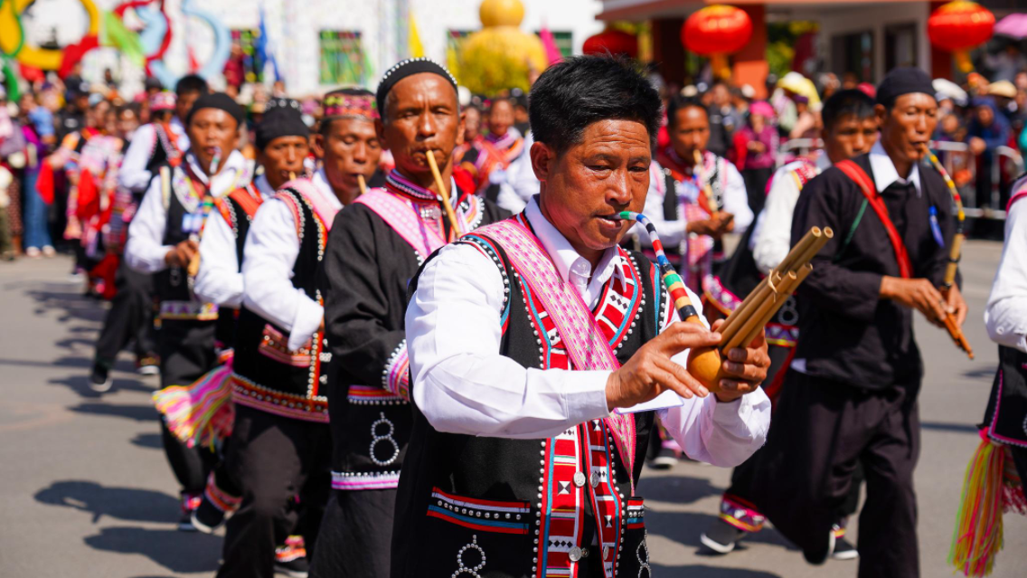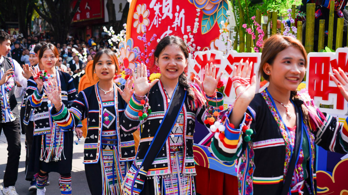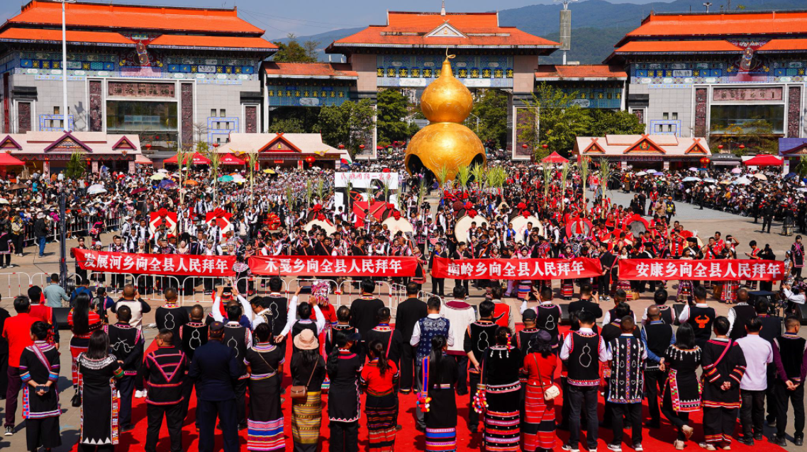 今年庆祝活动的高潮将集中在2月19日(正月初三)。当天上午,一场盛大的“花车承古韵 歌舞庆新春”拜年民族文化巡游将穿过县城主干道。届时,来自上允镇、酒井乡、东河乡、谦六乡等各乡镇的拜年团将身着节日盛装,载着寓意生活“节节甜”的甘蔗、大如簸箕的粑粑以及各类丰收农特产品,一路载歌载舞汇聚于民族团结进步广场(葫芦广场)。