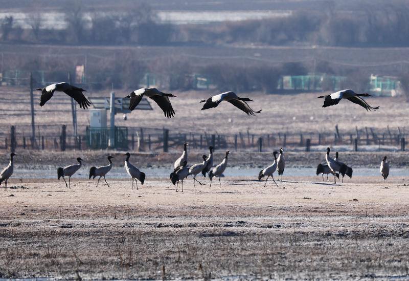 这片高原湿地迎来了历史性的时刻——纳帕海省级自然保护区管护局最新监测显示,在此越冬的黑颈鹤达573只、黑鹳226只、灰鹤68只,种群数量均创历史纪录。