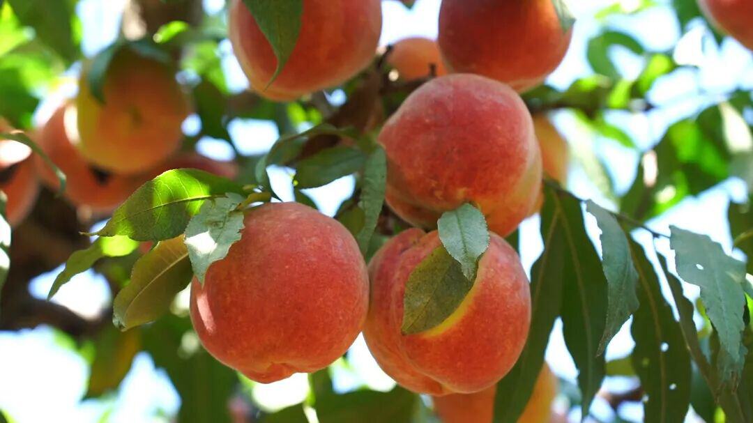 桃树褪去繁叶,枝头挂满沉甸甸的果实
