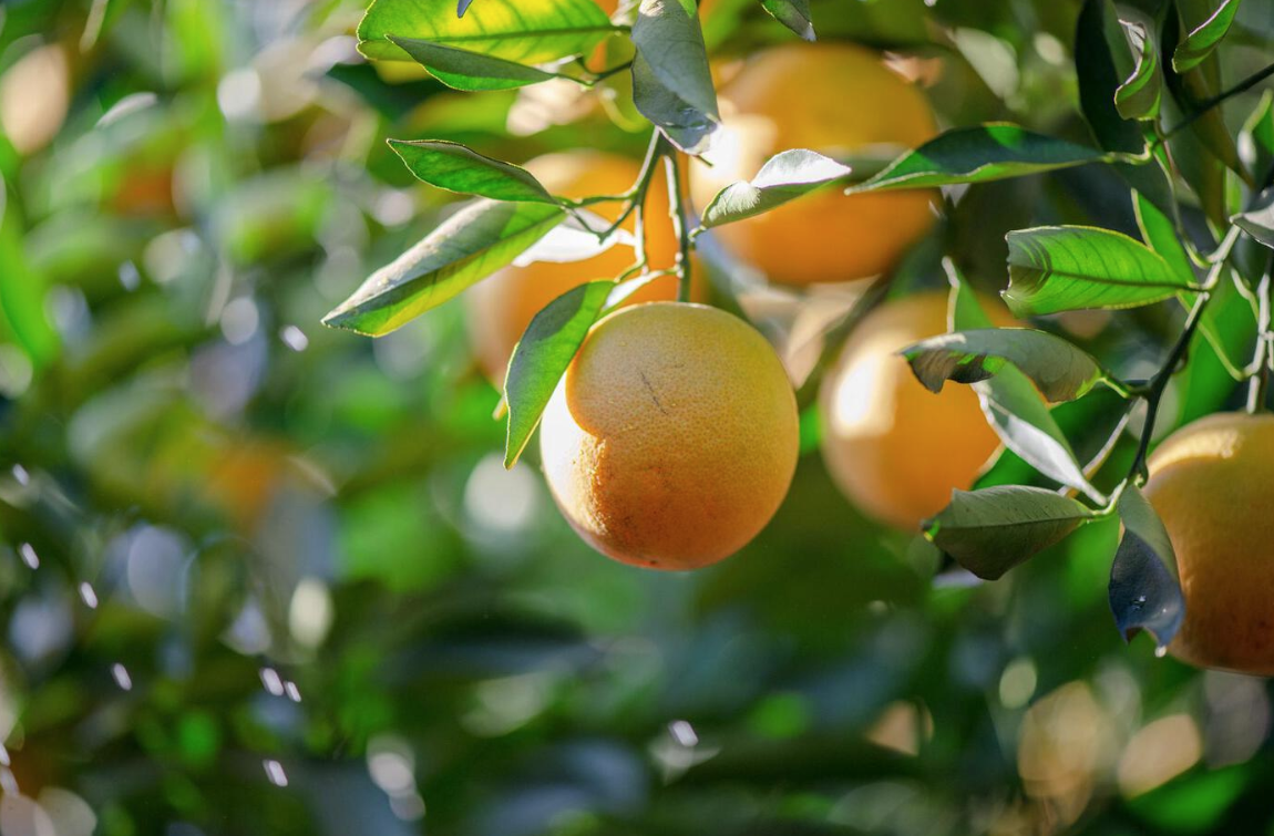 成熟的褚橙,果皮橙黄鲜亮,薄到近乎通透