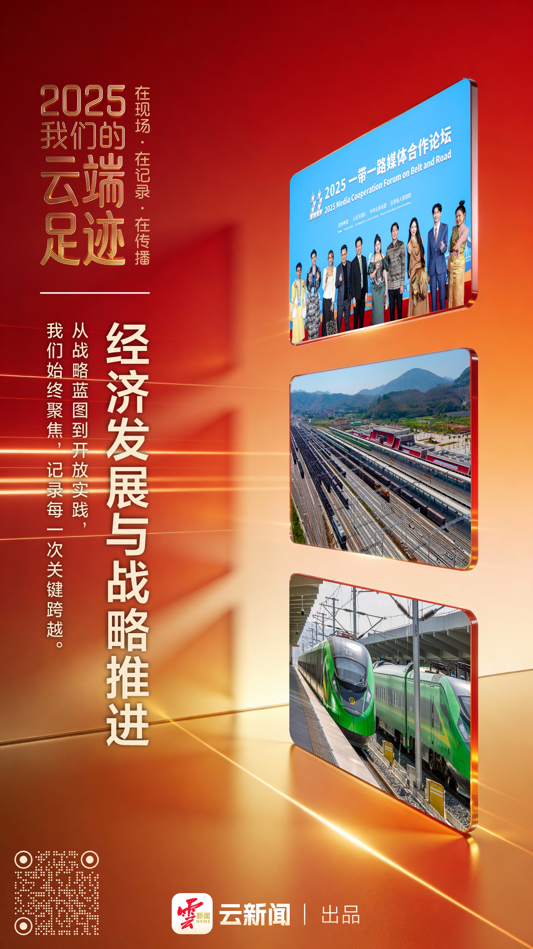 从全球南方论坛的思想激荡,到一带一路媒体合作的文明交响;从景迈山申遗两周年的古茶新韵,到中老铁路四载驰骋的钢铁丝路;从行走边疆的戍边足迹,到联通世界的融媒远航——这一年,我们用全媒体视角记录时代脉动,呈现云南高质量发展的坚实足迹。
