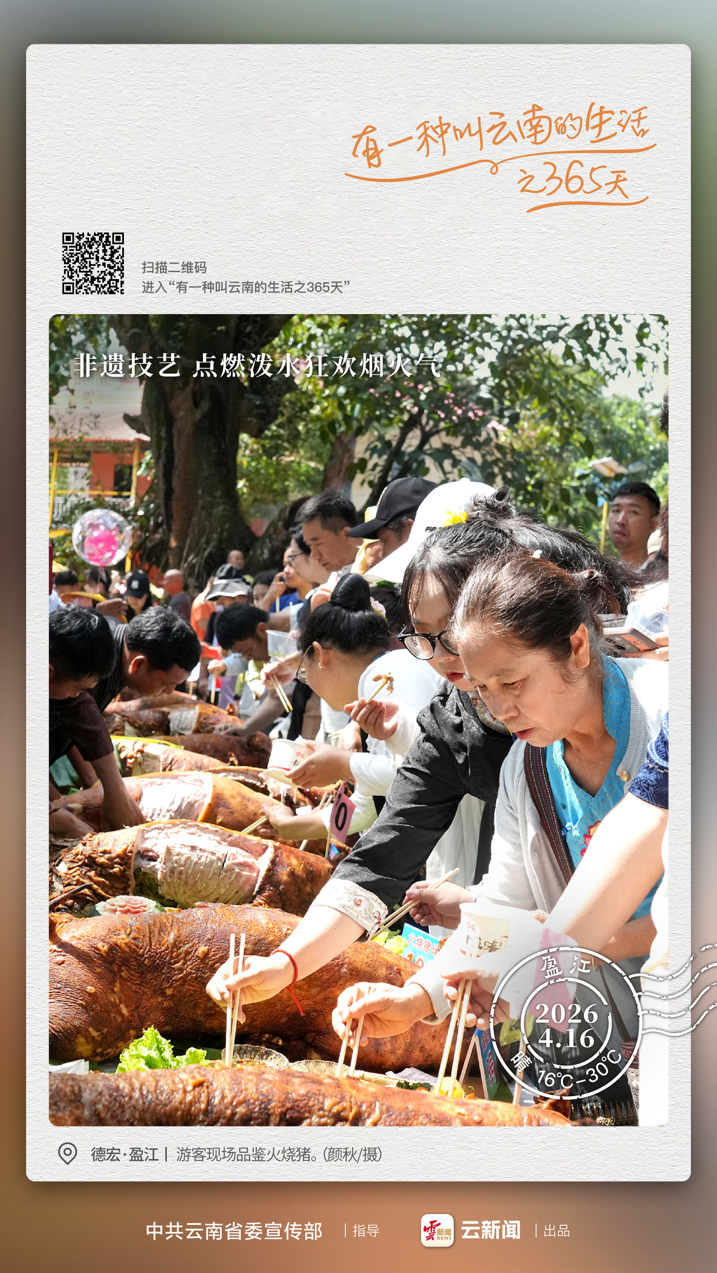 若您恰逢此时来到云南盈江,不妨循着烟火气找到傣家人的烤架旁。看着金黄酥脆的火烧猪被利刀切开,油花顺着焦香的外皮滑落,那是独属于盈江南亚热带季风气候里的鲜活滋味,也是傣家人刻在骨子里的烟火日常。