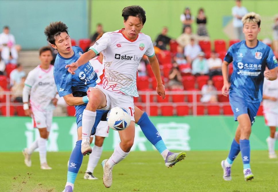 昆明城星足球俱乐部球员在比赛中。