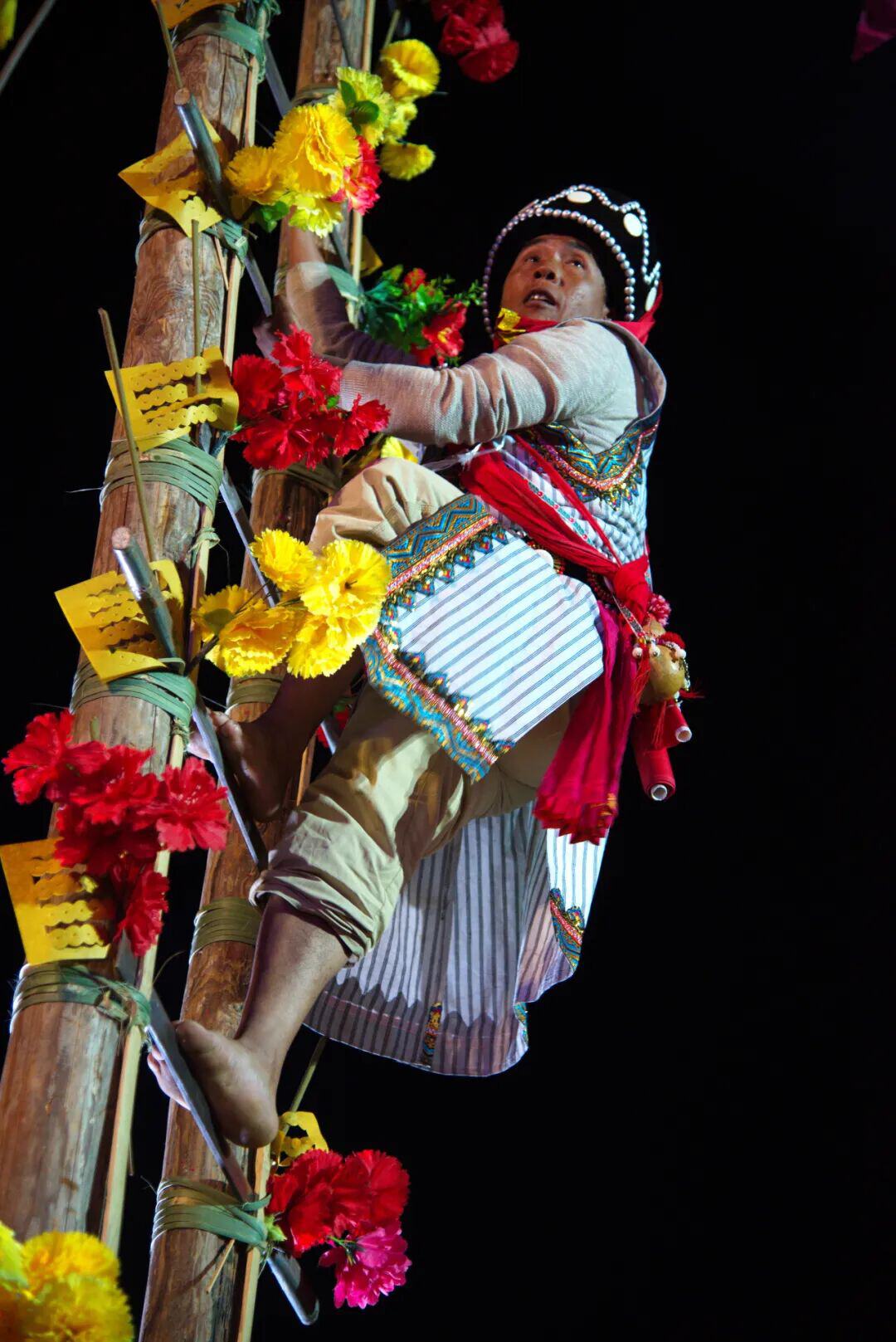 傈僳族刀杆节每年正月十五举办,“上刀山,下火海”是其中主要的习俗表演活动。它再现了山地民族翻山越岭的生活经历及攀藤负葛的艰苦卓绝精神,同时也是一种民间传统习俗活动。