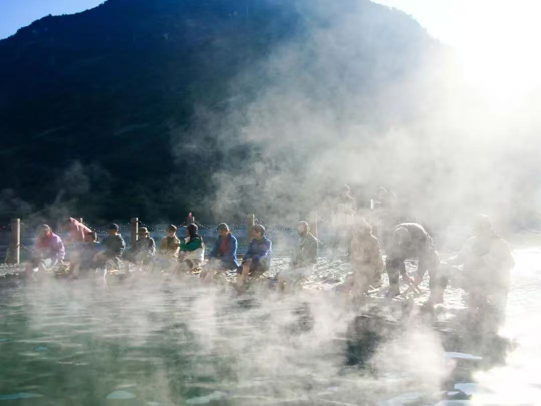 第二天或第三天后,全家人会带上行李,准备好食物,到温泉附近搭起竹棚,吃住在温泉边,洗温泉澡。