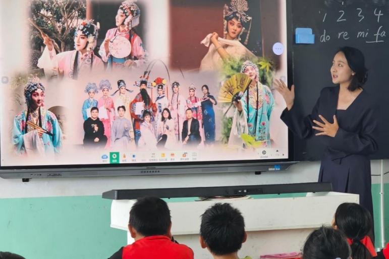 云南大学44名美术、音乐、舞蹈相关专业的支教师生派驻在33所中小学,其中,景洪市15所,鲁甸县18所。其间,支教师生将当地优秀传统文化融入课堂,在鲁甸县开设竹编、草编、民族纹样、民间舞等课程,在景洪市开设剪纸、版画、傣族舞、基诺族合唱等课程,引导各族青少年坚定文化自信。在鲁甸县组建石头彩绘、京剧鉴赏、AIGC绘画社团,在景洪市组建芭蕾社团、手工社团、校舞蹈团等,帮助乡村青少年认识美、发现美、感受美、创造美。