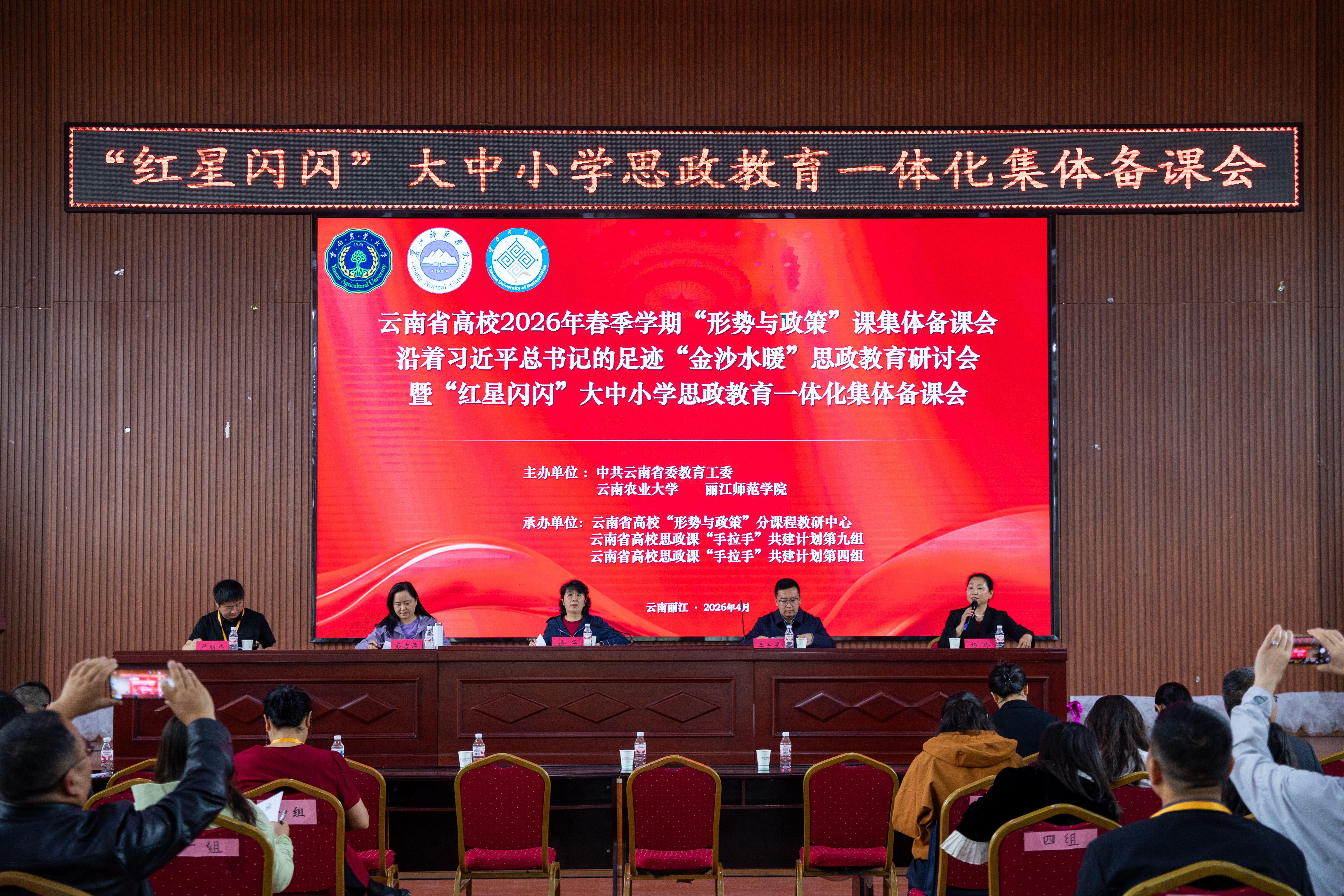 4月25日,“沿着习近平总书记的足迹‘金沙水暖’思政教育研讨会暨‘红星闪闪’大中小学思政教育一体化集体备课会”在丽江市玉龙县第四中学举办。此次集体备课会由中共云南省委教育工委、云南农业大学、丽江师范学院共同主办,来自全省大中小学的200余名思政教育工作者参加备课会。