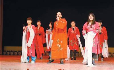 马天宇自己还参与剧本创作。他帮学生一个词一个词地“抠”,寻找“贬官”“三圣母”等中国古典文化词汇的最佳法语翻译;帮学生编排法语版戏剧《琵琶行》时,他也身着青衫、共同上台,化作风度翩翩的“白居易”……