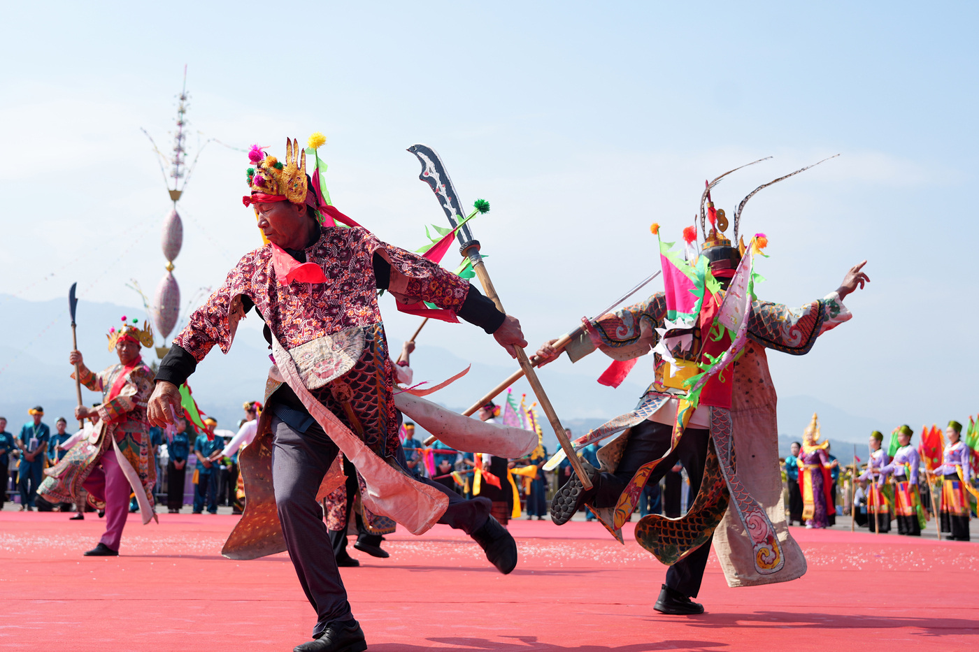 中午12时,泼水狂欢启幕,数万名游客与当地群众手持水盆、水枪,泼洒吉祥之水,欢声笑语满溢广场。“看到这么多朋友赶来过节,我们感到非常开心和自豪。”盈江傣族姑娘刀慧生的话语,道出了傣家儿女的热忱。午后,数十名鼓手齐奏“光弄”大鼓,浑厚鼓声回荡江畔,承载着古老文化的新生。