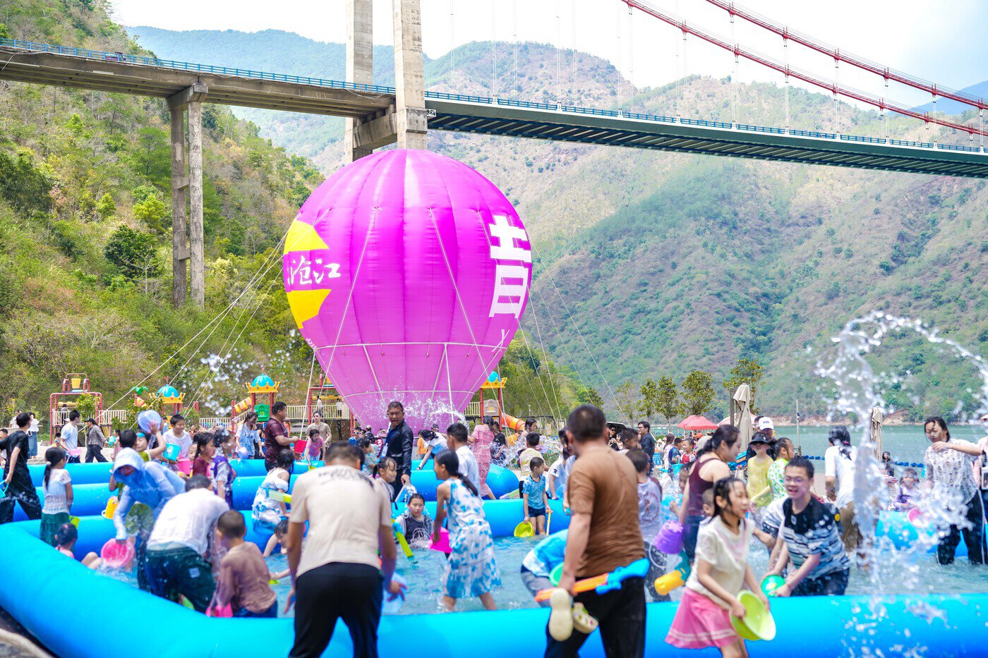 泼水环节开启后,大人小孩你追我赶,清凉水花飞溅,笑声在江畔久久回荡。