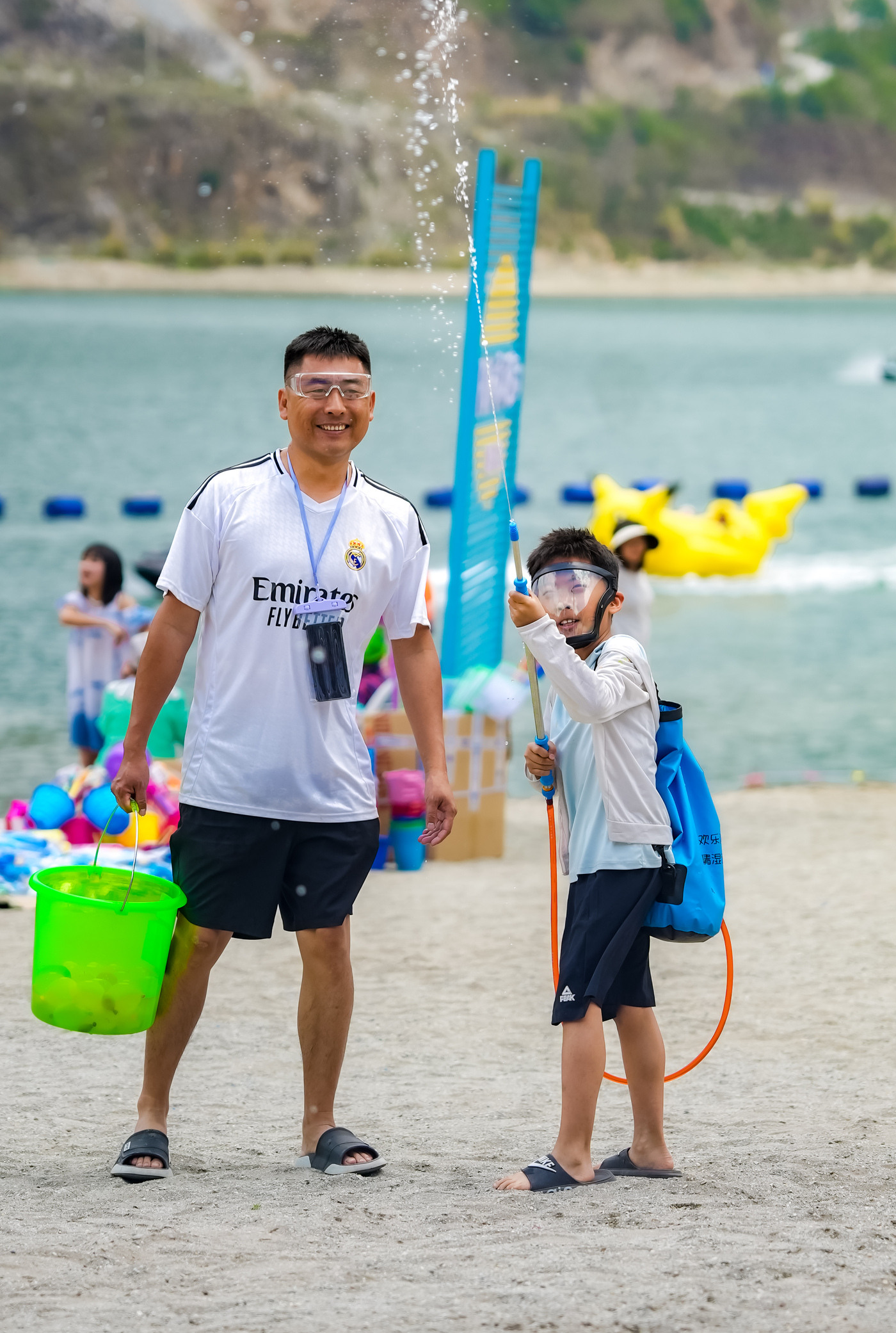 阳光、沙滩、电音、水花交织,把春日的欢乐泼洒在山水之间,成就一场独一无二的狂欢。金色沙滩上,DJ节奏动感,民族舞蹈轻盈,未等泼水开启,现场已满是欢腾。