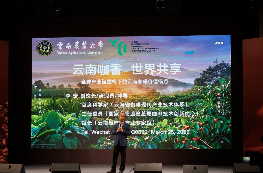 行业大咖现场支招,共话产业发展。云南农业大学副校长李宏解读全球产业链下云咖价值锚点;秋珀庄园、保山比顿咖啡、保山中咖食品的行业代表,分别从精品种植、咖旅融合、品牌营销分享实战经验,为云咖提质升级指明方向。