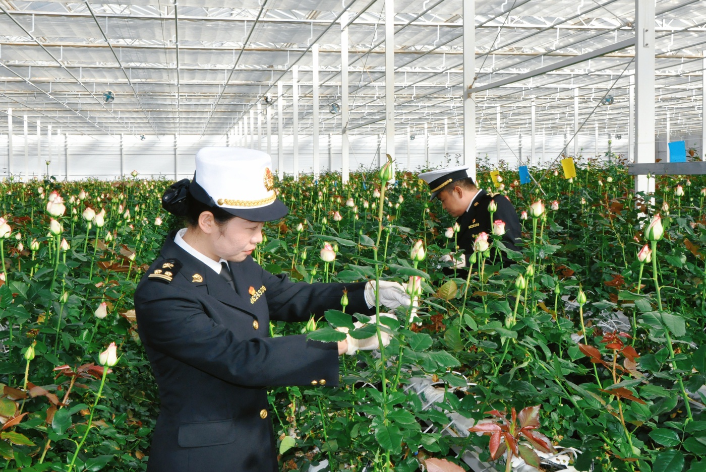 海关关员在出口花卉种植基地开展日常监管。通讯员 赵艳梅 摄