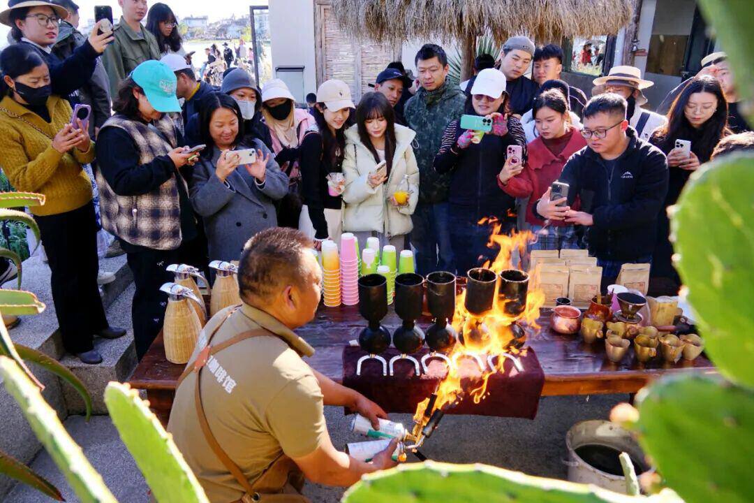 游客记录“咖叔”咖啡制作表演。图据大理发布