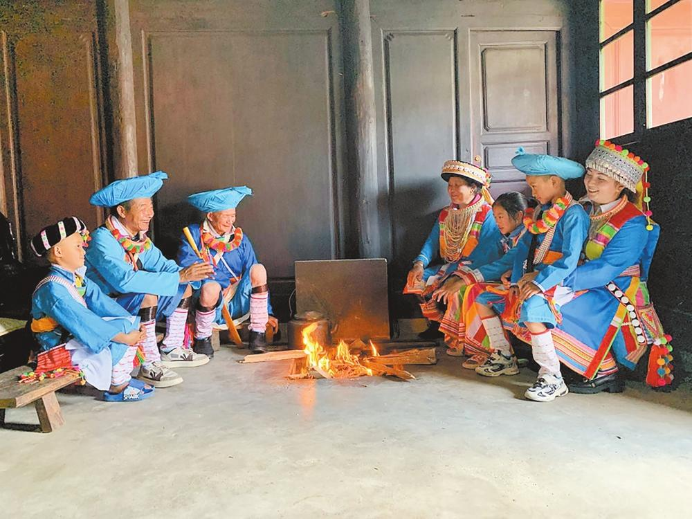 腾冲市猴桥镇猴桥村傈僳族村民围坐在火塘边共话孝老爱亲好家风。 腾冲市委宣传部供图