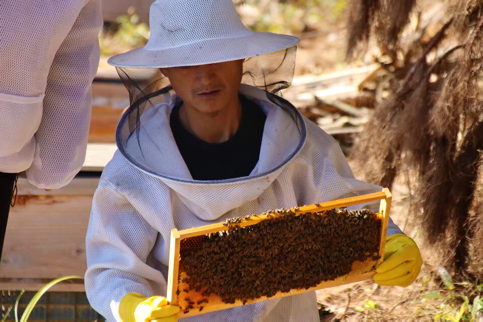 与俸彪的“定居式”养殖不同,来自陕西省的养蜂人张礼军则是“候鸟式”追花之旅。连续15年,每逢油菜花开,他便辗转2000多公里,带着230箱蜜蜂来到临翔区。他说:“临翔区的环境特别好,非常适合发展蜜蜂,繁蜂效果很好。”