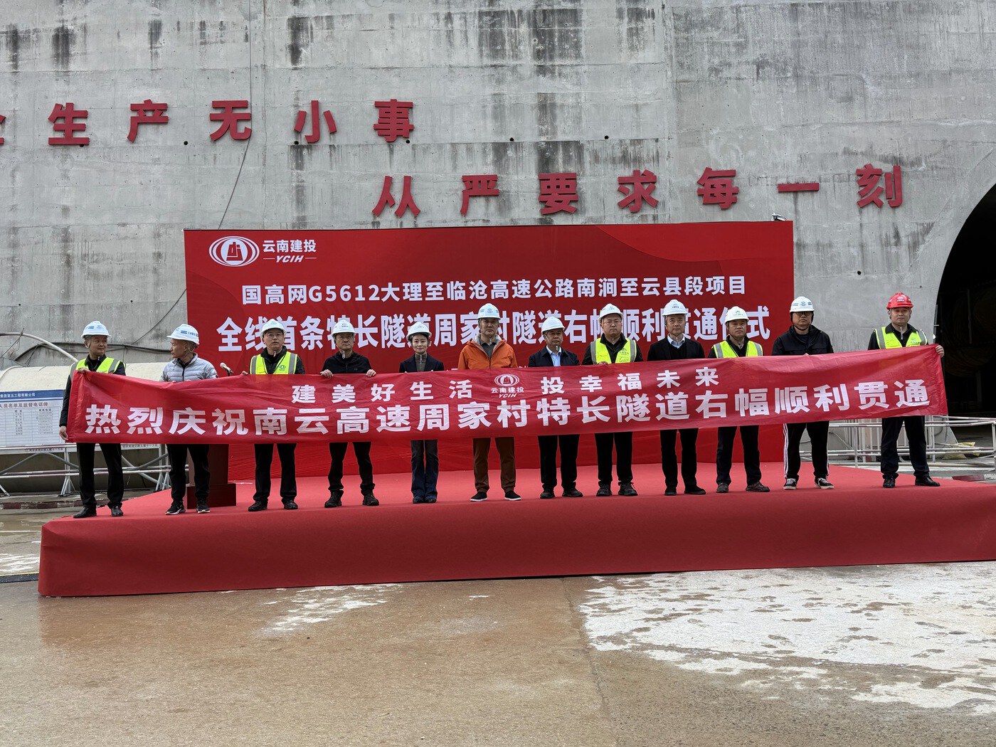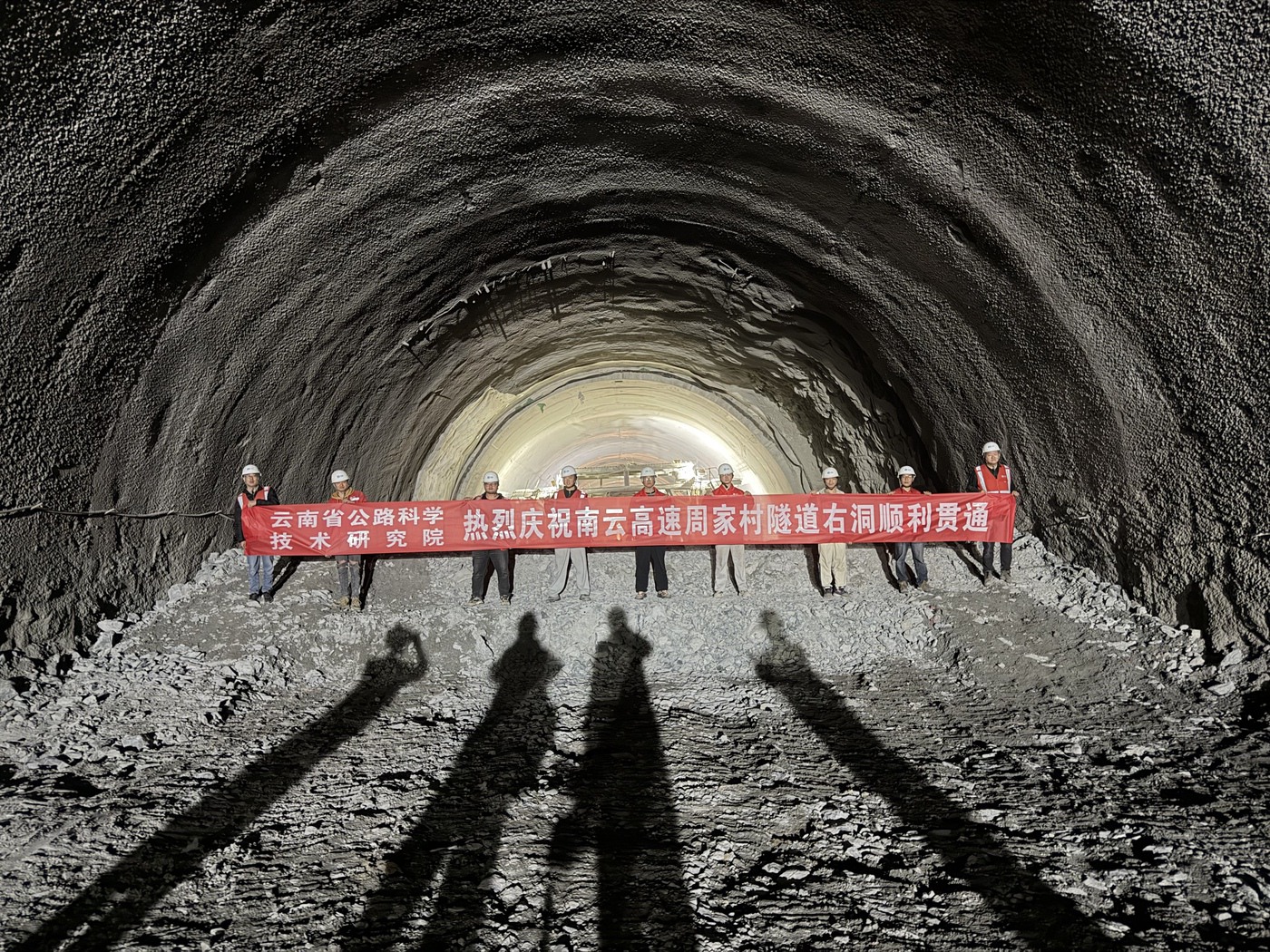 1月12日,云县周家村隧道施工现场机器轰鸣、笑语飞扬,建设者们以忙碌有序的作业身影,定格下这一攻坚时刻的荣光与喜悦——南云高速(云县段)首条特长隧道右幅贯通。