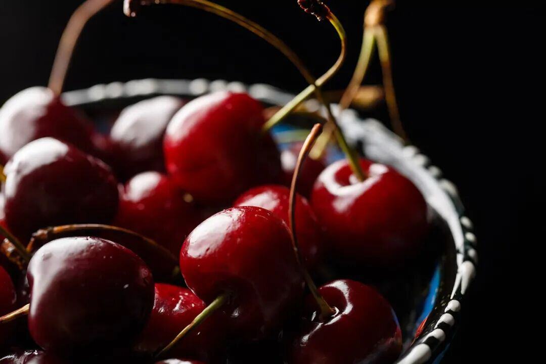 颜色越红润的车厘子花色苷含量越高,含量高就会呈现红色甚至黑色。车厘子中花青素的含量是草莓的 15~50 倍。