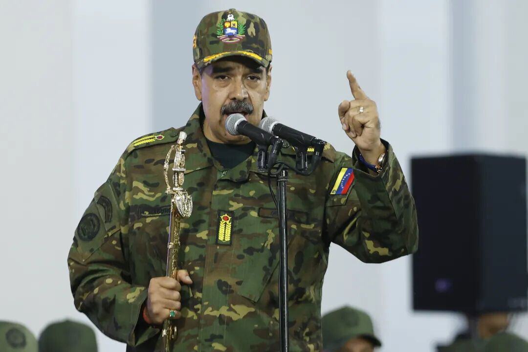 11月25日,委内瑞拉总统马杜罗在加拉加斯举行的游行活动上发表讲话。委内瑞拉总统马杜罗当日说,由于美国军事威胁,委内瑞拉正面临国家存亡的“决定性时刻”。新华社发