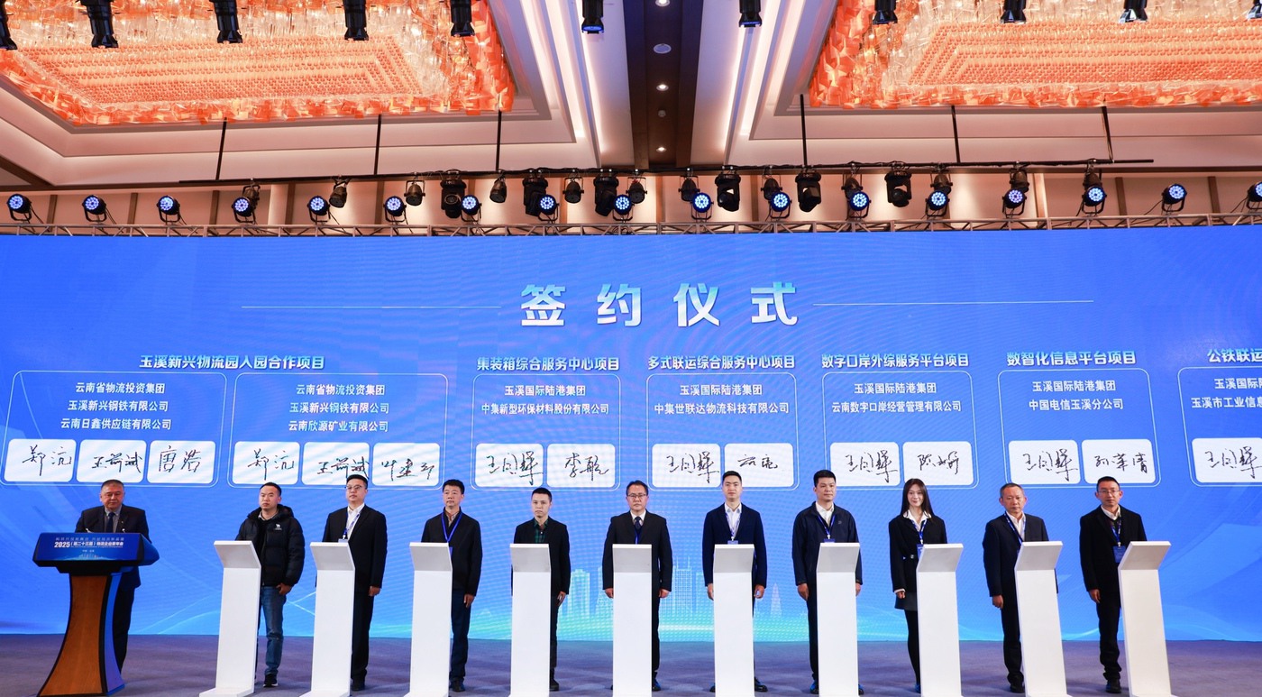 年会上6个项目现场签署合作协议——玉溪新兴物流园入园合作项目、集装箱综合服务中心项目、多式联运综合服务中心项目、数字口岸外综服务平台项目、数智化信息平台项目、公铁联运项目,这标志着玉溪在物流枢纽建设与产业协同方面迈出新步伐。