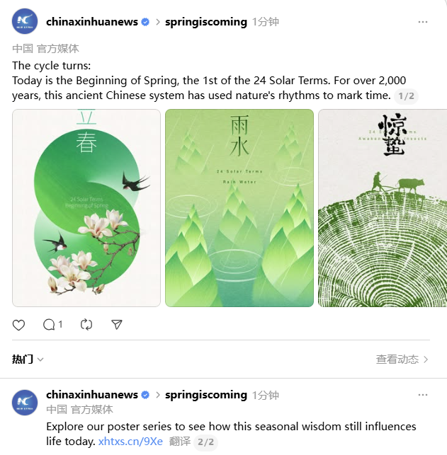 这组海报不只是节气提醒,更是以节气美学赋能文化出海,用融媒传播助力文明互鉴的生动实践。