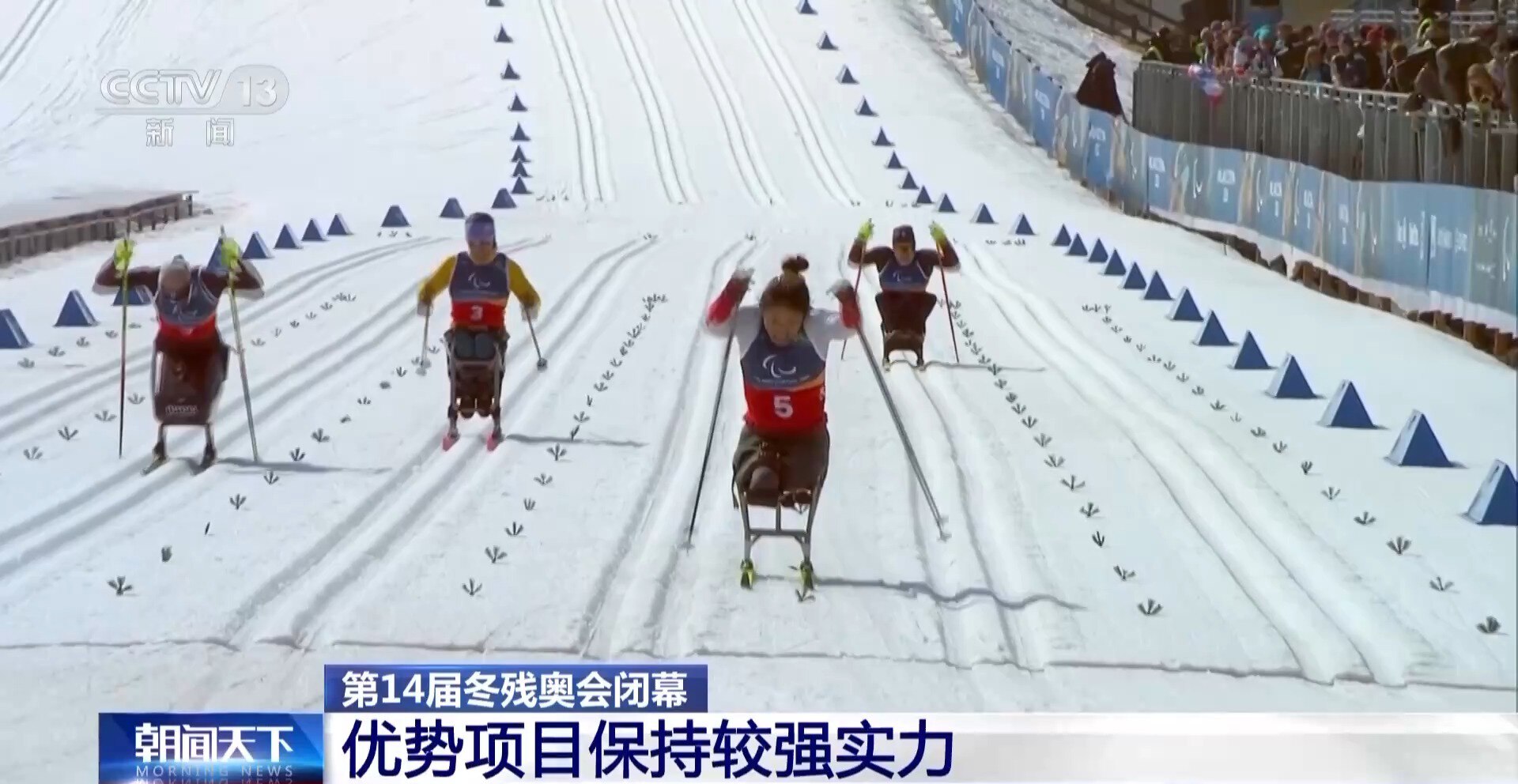 本届冬残奥会中国体育代表团在32个小项中获得奖牌,占参赛小项的44%。冬季两项水平有较大提升,男子站姿组、男女视障组实现了金牌突破。高山滑雪队克服场地难度大、线路复杂等诸多困难,获得1金、1银、5铜的成绩。残奥冰球队小组赛大比分战胜德国、意大利队,与世界一流强队差距进一步缩小。