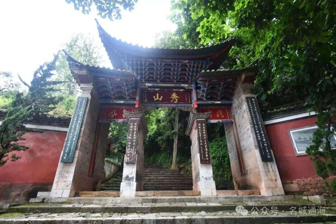 沿青石阶拾级而上,宋柏的枝干遒劲如墨笔,元杉的针叶筛下碎光,明玉兰在春日里绽出素白的花,“秀山三绝”让“秀甲滇南”的美誉有了具象的模样。林间古建筑星罗棋布,像散落在绿海中的珍珠。聚奎阁的飞檐翘角刺破云层,檐下风铃轻响,似在吟诵匾额上的诗文;朱熹题的“松竹陋春”匾、米芾写的“宝藏”匾、杨慎留下的诗句,刻在木柱上、嵌在砖墙里,每走一步,都像翻开一页千年的诗集。累了便在亭中静坐,听松涛伴着古寺钟声,看山风拂过草木,连时光都变得柔软。