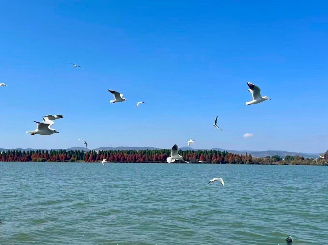 清晨出发至星云湖湿地公园,租一辆自行车,沿湖慢骑。冬季正值红嘴鸥迁徙至此,成群鸥鸟翩跹飞舞,您可近距离投喂、拍摄,与自然生灵共舞。沿途水杉林层林尽染,红黄交织,倒映水中,宛如行走在油画之间。
