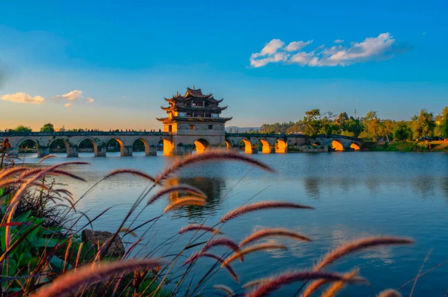 红河北岸,建水人家;古建流光,雄镇东南;米轨穿霞,桥影枕河;气锅蒸腾,豆腐飘香;陶纹藏史,文脉绵长。