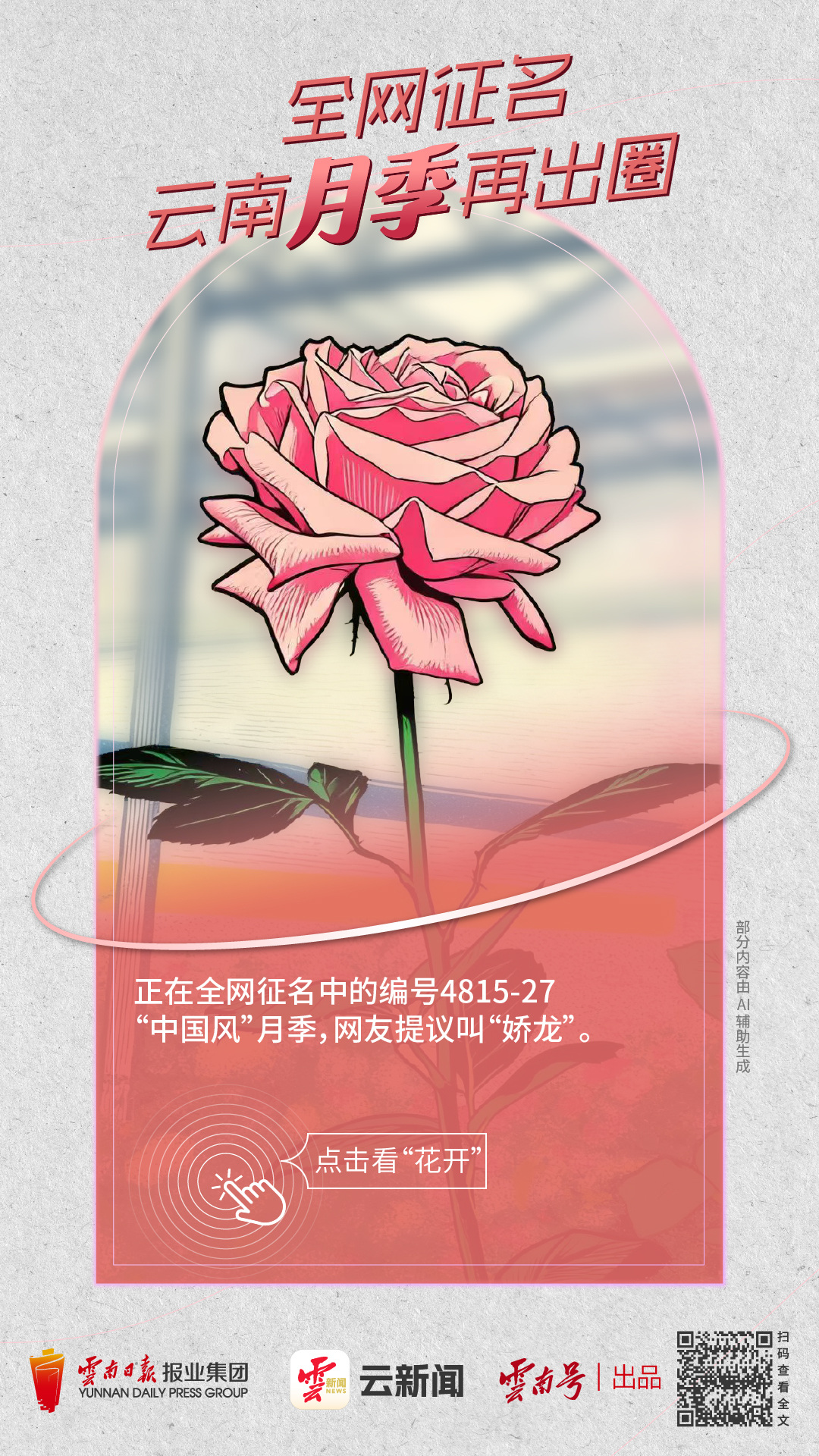 这几天,由云南日报云新闻客户端、云南省农科院、昆明市总工会共同发起的为编号4815-27“中国风”月季征名的新闻下面,不少网友提议叫“娇龙”,纪念刚刚离世的新疆干部贺娇龙。