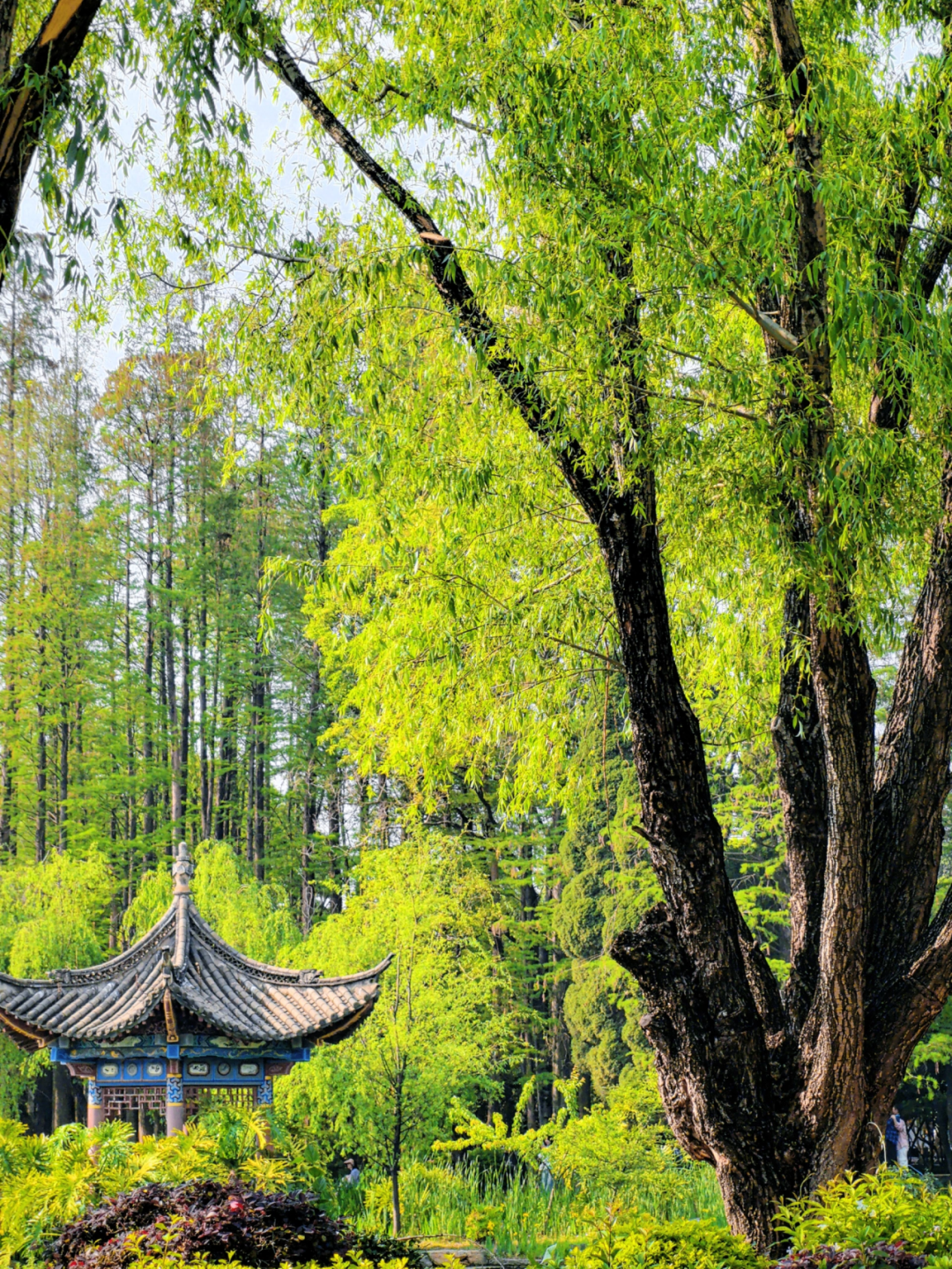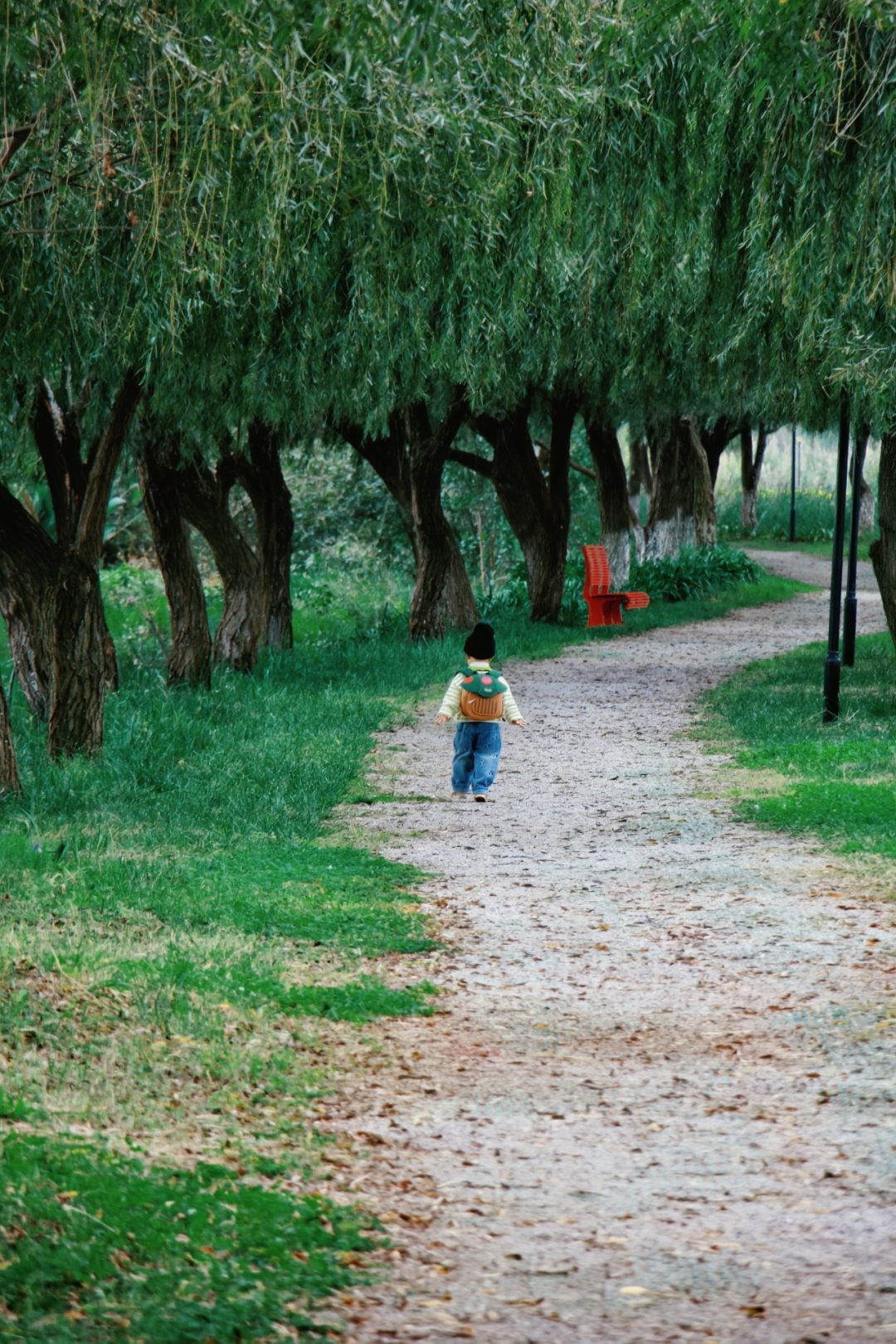 柳树步道:重新修整后的柳树步道氛围感超绝,沿着步道慢慢走,阳光透过枝叶洒下斑驳光影,配上红色的椅子,浪漫值拉满。