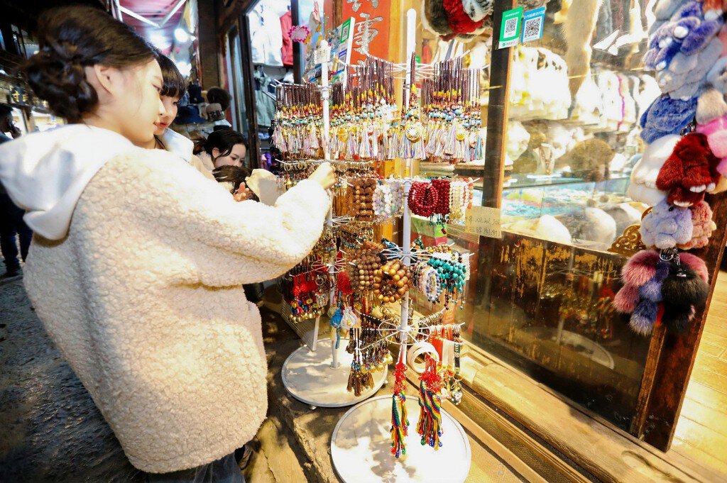 当晚,@杨晚笛、@肖育文视界、@乔帮主Michelle、@香格里拉张奶奶和十三月、@小乔帮主、@南曲文化、@小豹子DE豹儿等达人现身活动,以独特视角分享古城见闻,与观众互动。非遗集市上,藏绣、藏饰、藏纸、藏式小吃等承载文化记忆,达人们穿梭其间,与摊主交流、分享夜经济变化。