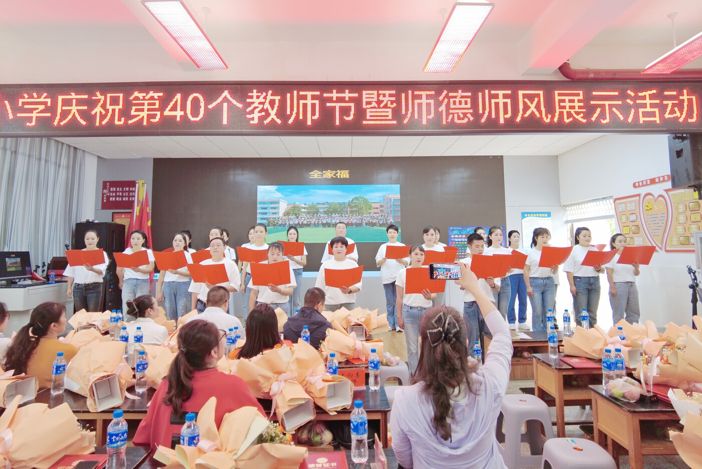 9月9日,麒麟小学举行庆祝第40个教师节暨师德师风展示活动。老师们通过诗歌朗诵、舞蹈、合唱、情景剧等多种形式,生动地展现了他们在教育教学工作中的敬业精神、关爱学生的感人故事以及对教育事业的执着追求。诗歌朗诵《师者之歌》,老师们用饱含深情的声音,歌颂了教师的无私奉献和伟大情怀;舞蹈演奏《我们相亲相爱一家人》,生动地展示了老师们的团结友爱以及师生之间的深厚情谊......一个个精彩的表演,赢得了现场师生的阵阵掌声。活动中,学生代表们也纷纷上台,为老师们献上了鲜花和亲手制作的贺卡,表达他们对老师的感激之情。