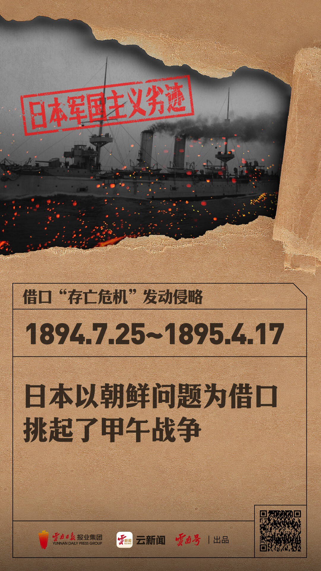 云新闻推出“日本军国主义劣迹”系列报道,通过还原历史真相,揭示日本军国主义给世界带来的深重灾难。以史为鉴,敲响警钟。本期报道聚焦:1894年,日本以“朝鲜内乱危及日本安全”为借口,挑起了甲午战争。